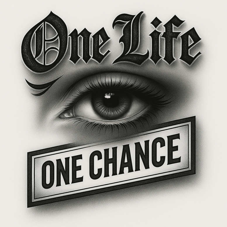 This AI-generated tattoo project presents a monochrome, cover-up-ready concept built around a lifelike eye paired with two bold typographic elements. At the top, Gothic script proclaims One Life, arching over the gaze, while at the bottom a solid banner reads ONE CHANCE, anchoring the composition. The treatment relies on dense black and grey shading, crisp linework, and controlled gradients to create depth and a convincing eye with realistic texture. The eye is rendered with careful iris texture, defined lashes, and a small highlight to preserve realism, counterpointed by the compact, high-contrast lettering and banner that stay legible as the surrounding shading blends in. The design is intentionally versatile, suitable for placement on the upper arm, chest, or back, and its dark, cohesive aesthetic makes it an excellent candidate for cover-up work where existing ink needs to be concealed beneath a unified motif. Symbolically, the eye can represent perception and inner truth, while One Life and One Chance invoke fate, choice, and personal motivation—themes that resonate with meaningful tattoos and contemporary body art. The composition embraces a bold, graphic vibe within a black and grey framework, yet retains the elegance of line detail in the eye and scripts, offering durability and readability on skin. If desired, the concept can be expanded into a larger composition with floral or Japanese-inspired accents without sacrificing legibility. This project demonstrates how AI-assisted concepting can inform a custom tattoo design, delivering a ready-to-ink concept that tattoo studios can adapt to individual clients, skin tones, and placement, with a clear cover-up, high-contrast aesthetic.