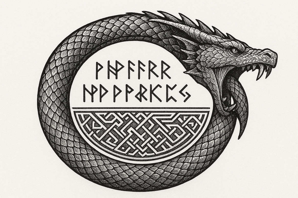 An AI-generated tattoo project featuring a dragon coiled around a circular medallion etched with knotwork. Rendered in black and grey, this fine-line design relies on crisp edges and subtle shading to create depth without sacrificing legibility over time. The dragon’s scales are suggested through precise hatch and dotwork, while the circular centerpiece carries an interlaced pattern that hints at Celtic and Norse knot traditions. The sinuous body wraps around the disk, establishing a dynamic focal point that works well on the forearm, shoulder, or calf. The knotwork panel offers contrast and negative space, letting the ink read clearly as the piece ages, while the dragon’s form gains dimension through gradual tonal variation. Symbolically, the combination of creature and knotwork speaks to protection, eternity, and interconnected paths—meaningful tattoos for clients drawn to mythic imagery fused with ornamental geometry. This compact tattoo design can stand alone as a small piece or be extended into a larger sleeve or back composition if desired, with the interwoven lines inviting additional embellishment. For artists, it demonstrates precise line registration, a restrained Black and Grey palette, and the balance between organic motion and geometric rhythm that defines successful fine-line work. Although the concept originates from AI, the resulting tattoo concept remains a professional body art design suitable for modern styles—from traditional black and grey to Japanese-inspired approaches—showing how a bold yet delicate motif can endure as a timeless tattoo.
