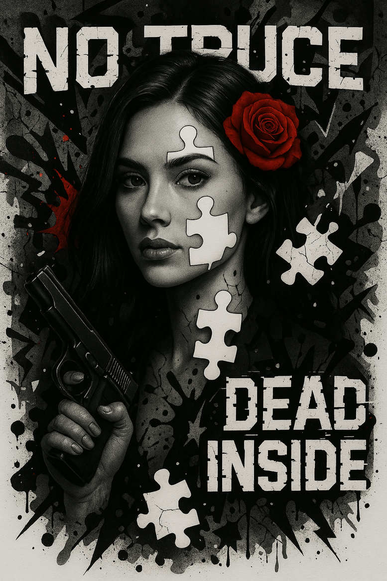 This AI-generated tattoo project presents a striking black-and-grey portrait merged with graphic puzzle-piece motifs, creating a moody study in fragmentation and resilience. A calm, contemplative face anchors the composition, while white puzzle pieces appear to drift across the cheek and neck, suggesting an unfinished identity. A vivid red rose tucked into the hair provides a bold color counterpoint, and a pistol held in the hand adds an undercurrent of threat and tension. The splattered background and distressed lettering evoke gritty street-art vibes, while clean lines and careful shading give a realistic feel to the portrait. The design reads as a meaningful tattoo design about inner conflict, memory, and reconstruction; it adapts well to a small, discreet area or a larger back- or chest-piece. The pattern-like puzzle motifs function as graphic elements that can be echoed in other body-art motifs, offering a cohesive custom tattoo design option. The piece leans into black and grey realism with selective highlights, perfect for a cover-up to replace an older, darker skin area—conveying depth, texture, and emotion without sacrificing clarity. This tattoo concept uses fine line detailing to maintain legibility on the skin, suitable for various sizes, and aligns with styles like rose tattoo design, infinity tattoo, realistic tattoo, and Japanese-inspired black-and-grey themes. For clients seeking meaningful tattoos that blend sculpture-like shading with graphic motifs, this AI-generated concept provides a strong foundation for a custom tattoo design that can be tuned to suit personal symbolism and placement needs. In short, it’s a dramatic, cover-up-ready composition that leverages artful composition, pattern play, and ink lineage to deliver a bold, timeless body art statement.