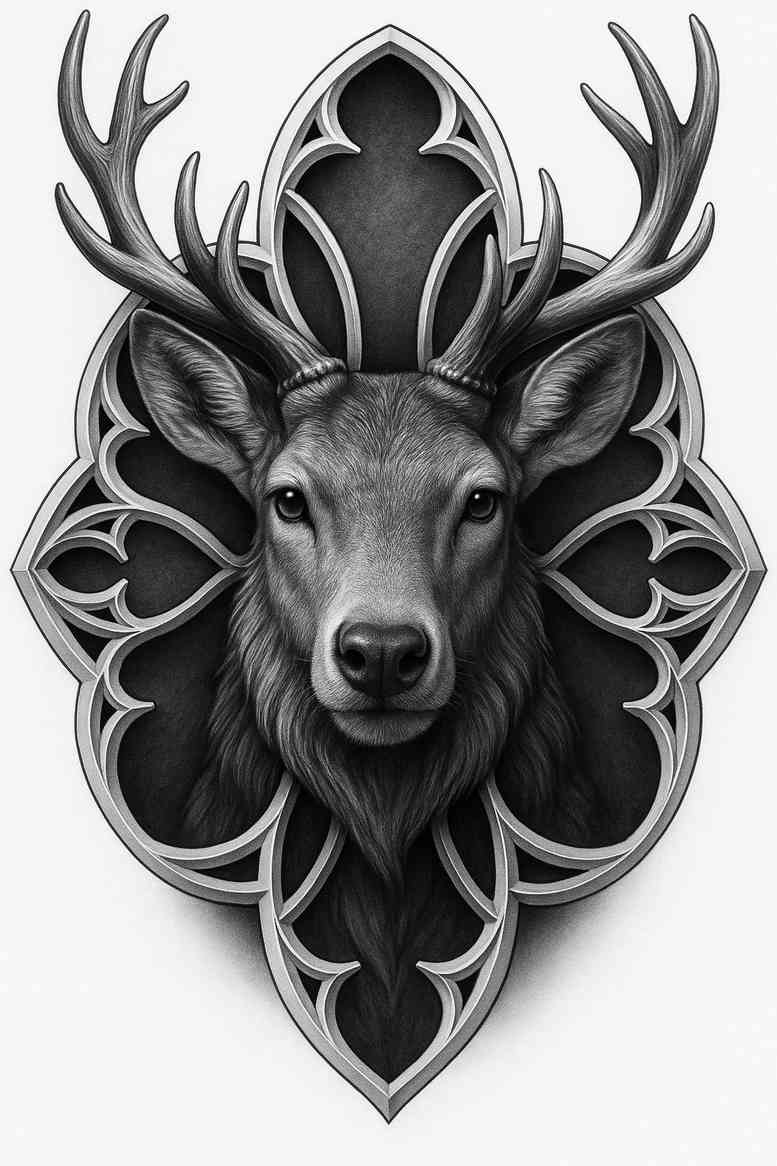 Incorporating elements of tribal art, this tattoo design can also appeal to those who enjoy a more abstract representation of nature. Whether you are looking for a small tattoo or a larger piece, this design can be customized to fit your personal style and preferences. The combination of the deer and the ornate patterns creates a harmonious balance, making it a standout piece in any tattoo collection.