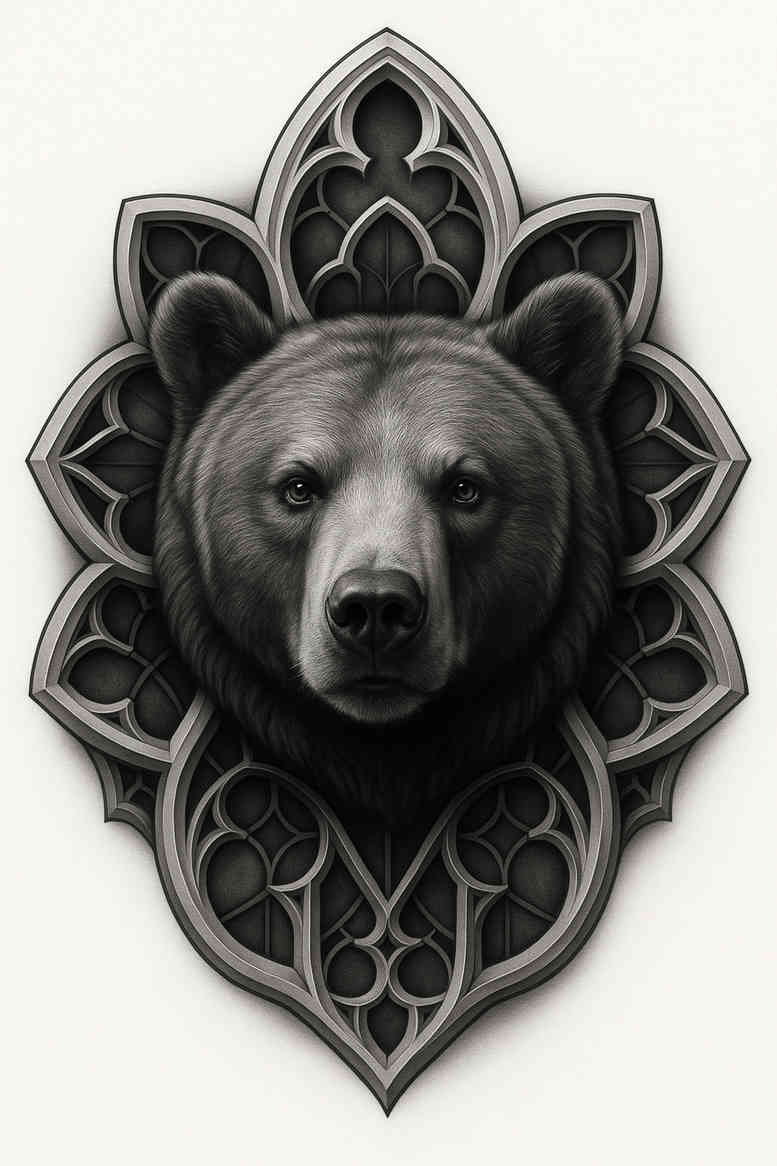 This AI-generated tattoo project showcases a striking bear tattoo design, intricately framed by elegant mandala elements. The combination of the bear’s powerful visage and the delicate, geometric patterns creates a stunning contrast that is both bold and refined. This tattoo is perfect for those seeking a meaningful piece of body art that symbolizes strength, courage, and protection. The bear, often associated with bravery and resilience, serves as a reminder of one’s inner strength and the ability to overcome challenges. The mandala, with its intricate designs, represents harmony and balance, making this tattoo not just a visual masterpiece but also a deeply symbolic one.