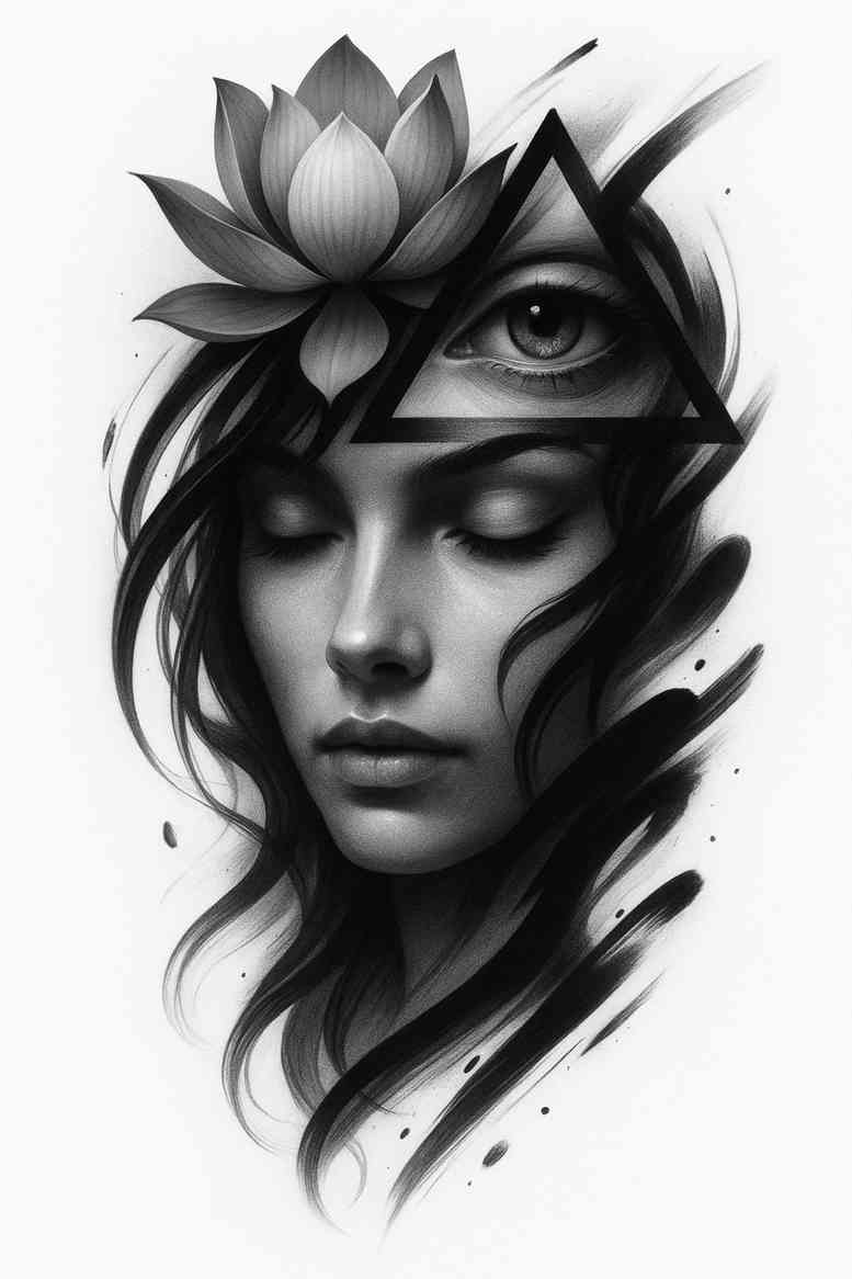 Caption: This cover-up-ready AI-generated lotus portrait is a dark yet graceful fine-line tattoo design. The project presents a black and grey portrait of a woman with a lotus perched on her head, her flowing hair forming soft, sweeping lines that blend with subtle shading. The technique emphasizes crisp outlines, restrained grey washes, and delicate negative space to preserve legibility on a small or curved surface. The design reads as a stand-alone tattoo idea or as part of a larger sleeve, and it is particularly well suited for a cover-up due to its strong focal point and ability to harmonize with existing ink. As an AI-generated concept, it demonstrates how digital ideation can translate into wearable body art, offering a high-contrast silhouette married to nuanced shading for depth. The lotus symbolizes purity, renewal, and spiritual awakening, while the woman’s serene gaze conveys resilience and introspection. Together they tell a quiet story of transformation, where darkness expressed in bold strokes gives way to clarity and beauty through ink. The piece invites tattoo artists to interpret the fine-line technique with precise needle control, balancing thin lines with soft shading to maintain legibility over time. SEO-wise, the description weaves in keywords such as tattoo, tattoo design, meaningful tattoos, fine line tattoo, lotus flower tattoo, infinity tattoo, tribal tattoo, rose tattoo design, small tattoos, flower tattoos, custom tattoo design, Japanese style tattoo, black and grey, realistic tattoo, body art, ink. The tone aims to read like a professional feature in a tattoo magazine—knowledgeable, visionary, and approachable—while acknowledging the contemporary role of AI in idea generation. Given its moody palette and strong silhouette, this project is perfect for a cover-up, as the lotus and portrait can be positioned to mask marks and integrate with existing lines. It is presented here as an AI-generated concept for inspiration and adaptation by artists worldwide.