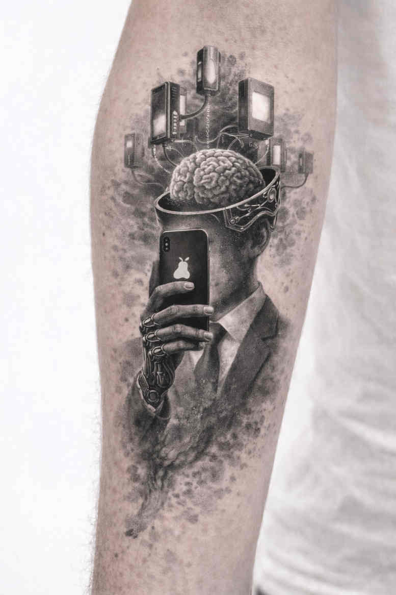 This tattoo presents a bold, gravity-defying scene rendered in black and grey realism, where a human hand rises from negative space and clasps a densely packed city skyline that unfolds upward into a domed silhouette. The composition is vertical and centered, with careful layering of textures—from smooth skin gradients on the hand to the intricate architectural silhouettes of towers, spires, and windows. The artist employs a mix of fine line detailing and soft stippling to create depth, while high-contrast shadows carve the skyline against a pale scar of skin, giving the illusion of a diorama suspended in space. Symbolically, the piece explores themes of control, urban ambition, and the fragility of dreams under pressure—a city that exists within one’s grasp, yet remains distant and almost mythic. The skyline seems to emerge from the palm as if the hand is both creator and custodian, a visual metaphor for how cities are built upon memory and effort. The style sits comfortably within surrealism and black-and-grey realism, leaning on a restrained palette to emphasize form over color. The design reads as a cohesive narrative: a tactile, almost perceptible moment where the tangible (hand) and the intangible (city) intersect. For potential clients, this concept is also a strong candidate for a cover-up, given its heavy dark masses and the ability to blend existing marks into shadowed planes. As an AI-generated concept, the image benefits from algorithmic collaboration to propose a composition that remains practical for tattooing, with clear separation between negative space and ink density to support long-term clarity. For clients seeking a statement piece that remains legible from a distance and upon close inspection, this design offers a dramatic focal point on the forearm, adaptable to various sizes by preserving the central hand-to-city relationship. The piece also presents excellent potential for a cover-up due to its emphasis on strong blacks and gradient transitions that can blend existing marks into smoke and shadow without losing the piece’s narrative clarity.