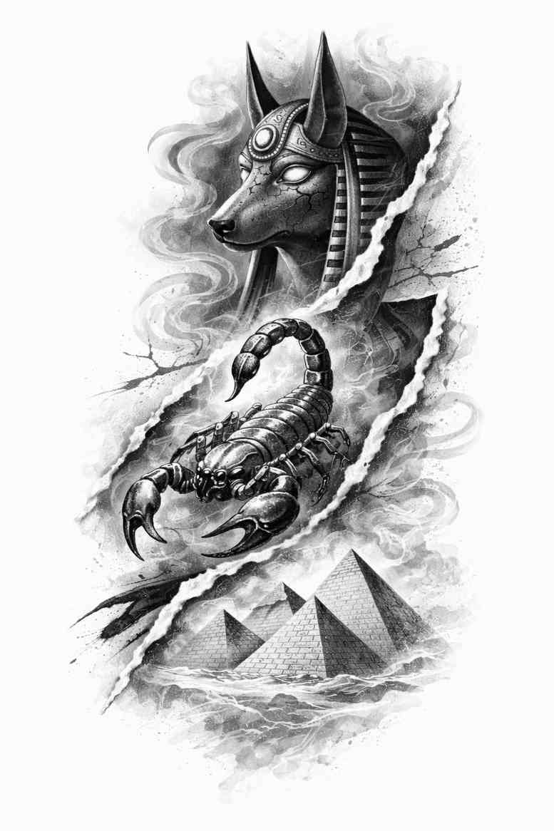 This AI-generated concept presents a bold blackwork tattoo design in black and grey with high-contrast shading designed to make a lasting impression on the skin. The composition centers on two entwined dragons; a dominant dragon head rises from the upper left, its scales rendered with dense line work and solid black shading, while a second dragon coils below, its body forming a curved barrier that frames a cluster of geometric triangles at the base. Negative space is carefully sculpted to give the piece breath and to keep the figure legible at a distance, while crisp line work and heavy blacks create a graphic, almost etched appearance that reads clearly on skin. A stylized chain wraps around the midsection, adding a tethered, protective motif that reinforces the sense of movement as the dragons twist together. The smoky gradient shading around the creatures adds depth and atmosphere, guiding the eye from the majesty of the heads through the sinuous bodies to the angular geometries alighting at the bottom. Symbolically, dragons stand for power, wisdom and guardianship; the duality of two beings emphasizes balance and resonance, while the series of triangles suggests structure, order and precision within chaos. The piece is conceived as a strong cover-up concept, leveraging dense blacks and deliberate negative space to mask underlying marks and to deliver maximum impact even when sized for a back or chest placement. This design merges traditional tattoo iconography with a contemporary vector-like geometry, creating a versatile framework that a tattoo artist can adapt to a client’s anatomy while preserving legibility of both dragon figures and the surrounding geometric frame. As a note, this AI-generated artwork offers a fresh interpretation of mythic beasts rendered in grayscale with a high level of editorial polish that suits a magazine feature on modern tattoo design.