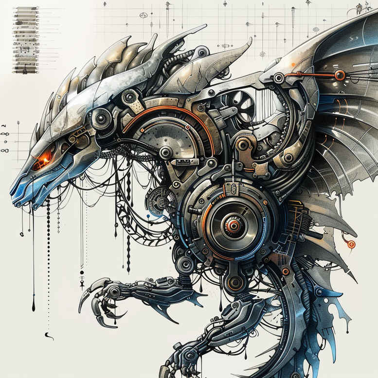 This biomechanical dragon tattoo design fuses organic dragon anatomy with mechanical components, presenting a central dragon figure wrapped in interlocking gears, pistons, tubing and cables. The composition balances dense shading with negative space to suggest motion and power, with exposed circuitry along the spine and wing structures creating a fusion of living form and engineered precision. The palette relies on black and grey gradations, with cool metallic blues highlighting key mechanisms to enhance depth and realism, while delicate linework accents convey texture in scales, metal plates, and tubing. The design speaks to themes of transformation, resilience, and the intimate bond between flesh and machine, making it a strong choice for large-scale pieces such as back or chest panels. Its mechanical motifs invite interpretations of technology as a living armor, a symbol of strength, and a tribute to industrial aesthetics. As a pattern-rich composition, it uses repeating circular gear motifs and lattice-like tubing that can be adapted to fit a wide canvas. The piece can be configured as a standalone work or extended into a sleeve, with potential for additional elements such as sparks, steam, or circuitry pattern that echo the core gears. In terms of technique, the artist employs crisp linework, smooth gradients, and high-contrast shading to achieve a sense of metallic texture and weight, while maintaining clarity of form at various viewing distances. From a cultural perspective, biomechanical designs resonate with modern tattoo culture as expressions of futuristic identity and personal power; the dragon motif adds mythic resonance and serves as a powerful guardian figure. In addition to its aesthetic appeal, this tattoo design is offered as an AI-generated concept, suitable for visual exploration and concept-to-tattoo discussions; for clients seeking a bold, long-lasting body art statement, this piece doubles as a potent cover-up option due to its dense blackwork foundation and strategic shading that can mask older tattoos. Whether pursued as a standalone statement or as part of a biomechanical sleeve, the piece communicates power, precision, and futuristic artistry, aligning with trends in tattoo design, black and grey realism, and meaningful tattoos. AI-generated notes aside, the concept remains a versatile blueprint for tattoo artists and clients seeking meaningful tattoos with a dramatic, high-contrast presence.