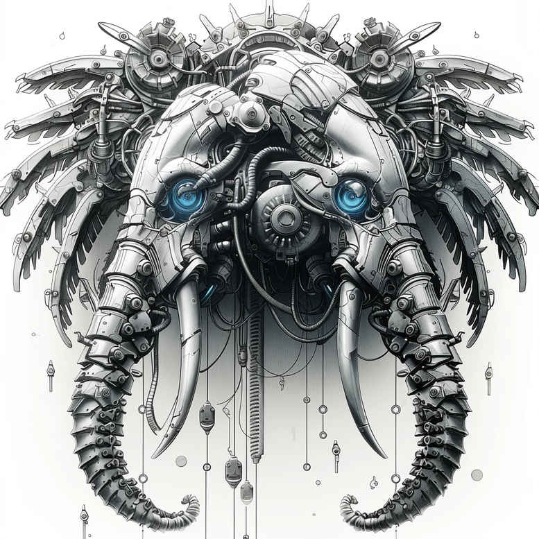 Biomechanical elephant head tattoo design fuses biomechanical anatomy with industrial machinery, pairing chrome gears, pistons, and slender tubes to sculpt a fiercely detailed head motif. Executed in black and grey, the composition relies on high-contrast shading, negative space, and precise linework to create depth and the illusion of an organic shell encasing mechanical innards. The centerpiece is a helmet-like cranial mask studded with gears and a lattice of tubes that weave around the skull, while subtle splatters and dripping accents contribute a sense of motion and energy. This design speaks to the fusion of nature and machine, a theme common in modern body art where meaning is drawn from the clash between flesh and steel. As a tattoo design, it works well on the upper arm, shoulder blade, or chest, serving as a dramatic statement piece for those seeking a meaningful tattoo with a strong graphic impact. The piece is also a great candidate for a cover-up due to its dense black areas that can blend imperfections and transitions. AI-generated concept? Occasionally, this tattoo design is presented as an AI-generated concept to demonstrate how algorithmic creativity can inform bold biomechanical artwork. In terms of symbolism, gears symbolize engineered precision and control, while the elephant head evokes memory, strength, and resilience; together they form a powerful narrative about resilience through mechanized transformation. For enthusiasts of dark, graphic body art, this piece delivers a striking, highly sculptural silhouette that reads well in close view and from a distance, making it a versatile option for small tattoos or large-scale commissions alike. The technical emphasis on line weight, shading, and texture contributes to a realistic yet stylized effect that can be replicated across materials and skin tones, ensuring a timeless look. Overall, this is a premium example of the biomechanics style, closely aligned with the street-ready appeal of black and grey tattoos while offering a distinctive custom tattoo design suitable for meaningful tattoos and personal symbolism. Designed to sit with natural body contours, the piece can be adjusted for round shoulders or flat planes, maintaining readability at different scales. The shading uses layered grayscale washes to simulate brushed steel and graphite, with bright highlights to mimic chrome reflections. When planning a commission, artists consider the wrapping of cables and tubes to accentuate movement around joints, ensuring the piece remains dynamic as the wearer bends. For collectors of meaningful tattoos, the elephant motif can symbolize memory and endurance, while the mechanical elements convey evolution and resilience. The AI-generated aspect is cited here to illustrate the potential of AI-assisted concepting in biomechanics, but the final piece relies on expert line work and tactile shading to translate the design into skin, resulting in a durable, bold statement piece that endures over time. This design aligns with modern trends in biomechanical tattooing, which fuse science fiction aesthetic with realistic shading to produce a striking, long-lasting body art piece that reads well in both close-up and distance shots. In short, this is a premium, cover-up-ready tattoo design that blends tradition and futurism for a unique personal symbol.