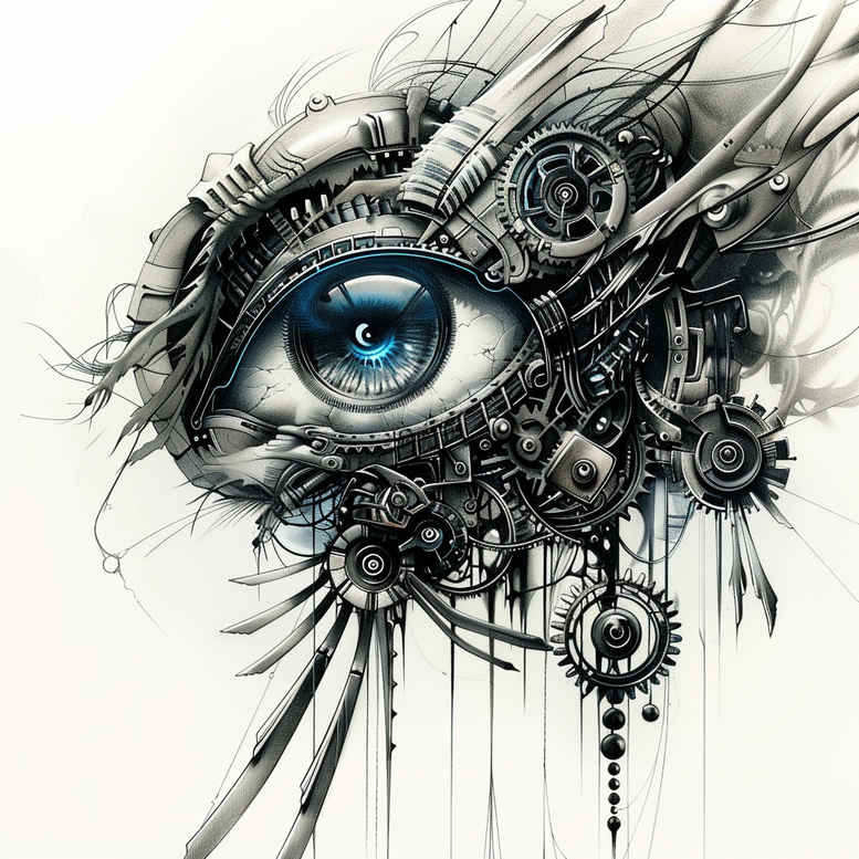 This biomechanical tattoo design centers on an eye fused with machinery, where the iris rests at the core and is encircled by gears, pistons, tubes, and flowing cables. Rendered in black ink with grey shading, the piece uses high contrast and careful cross-hatching to create depth, metallic sheen, and a sense of motion as if the gaze is powered by a concealed engine. The iris is detailed with micro-lines that echo gear teeth, while outer rings spiral outward, intertwining with conduits that resemble sinew more than metal. The composition balances anatomical precision with industrial geometry, producing a visual synthesis that speaks to perception, awareness, and the fusion of flesh with mechanism. This design sits squarely in the biomechanical genre, a contemporary tattoo style that merges body art with sci-fi machinery, and its silhouette remains legible from a distance while revealing fine details up close. The piece benefits from restrained negative space, letting the central motif breathe within the surrounding machinery. As an AI-generated concept for the InkByAI gallery, it demonstrates how digital ideation can translate into a tangible tattoo design with strong visual impact, adaptable to larger canvases like the upper arm or shoulder. Meaningful tattoos often explore identity and augmentation, and this concept embraces resilience, transformation, and the intimate relationship between human vision and engineered enhancement. It showcases practical considerations for tattoo lovers and artists alike, including durable line work, texture contrasts between metal and tissue, and the potential for subtle color accents while preserving the black and grey palette. In short, this is a modern, expressive design that marries biomechanics with fine line detailing for a bold statement about technology’s role in personal expression. Artists can adjust line weight to suit different skin tones, and the gear motifs invite color accents if desired while preserving the primary black and grey aesthetic. The concept also nods to classical mechanical illustration, giving it a timeless quality that remains captivating as body art across generations.