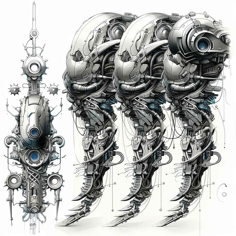 Biometric lines braid through a biomechanical silhouette, presenting a studied composition of nerve-like tubing, articulated plates, and interlocking gears rendered in black and grey. This biomechanical tattoo design fuses machine anatomy with body art, creating a spine-centered motif where a vertical column of plates and screws runs along an imagined anchor point on the back or arm. The three mirrored segments are sharpened by crisp linework and subtle negative space, giving the illusion of three-dimensional chrome interlocks pressing into living tissue. The overall aesthetic leans into cybernetic realism, with mechanically inspired anatomy that suggests function and form coexisting within organic tissue. Each element—gear, piston, rivet, and segmented armor—appears purposeful, designed to convey motion, resilience, and the tension between rigidity and flexibility. The black and grey shading is deliberate, delivering depth without color while preserving a sculptural, almost architectural quality, with highlights that mimic reflective metal surfaces. As a diagnostic-precision study, this AI-generated concept demonstrates how biomechanics can cross into high-contrast graphic art, merging dense line density with soft gradient shading to evoke metallic surfaces and cold light. This tattoo design speaks to fans of fine line tattoo and large-scale body art, offering a cohesive blueprint for sleeve concepts or standalone panels, ideal for ambitious collectors seeking a cohesive biomechanical narrative. The repeating motif emphasizes rhythm and symmetry, making the piece an intriguing study in pattern and repetition while remaining legible from a distance. In short, the composition is a bold exploration of machine-inspired anatomy, a visual dialogue between hardware and flesh, and a testament to how tattoo design can translate synthetic imagery into living skin through masterful technique, precise geometry, and deliberate storytelling.