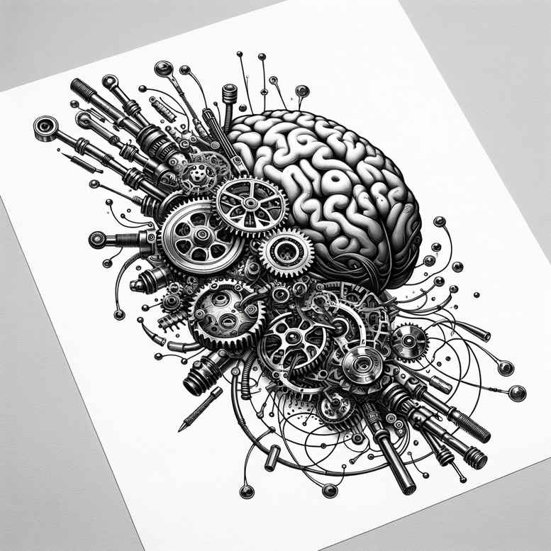 This biomechanical tattoo design fuses anatomy and engineering, presenting a central brain silhouette intertwined with interlocking gears, tubes, pistons and cables. Rendered in black and grey, the piece uses high-contrast shading to carve volume and reflect metallic surfaces, while negative space around the cog wheels keeps the composition readable on skin. The brain acts as the core, with cog-like gears spiraling outward and weaving tubing and pistons that mimic neural pathways, producing a dynamic pattern-like texture that invites close inspection. The design is highly adaptable for large canvases such as back, chest or sleeve placements, where dense black ink can achieve maximum impact while still allowing balance through lighter grays and negative space. Symbolically, it embodies the fusion of organic life with machinery, a meditation on resilience, intellect, and the synergy between biology and technology. As an AI-generated concept, this tattoo design demonstrates contemporary capabilities in crafting intricate, machine-inspired body art that translates well to real skin. Its heavy black shading and interlocking elements also make it an excellent candidate for cover-up work, capable of concealing older tattoos or scars beneath a cohesive biomechanical surface. In terms of style, the piece anchors the biomechanical tradition with a bold tension between tissue-like forms and rigid mechanical components, while maintaining legibility and a dramatic silhouette that perform well in black and grey ink. For discoverability, keywords such as biomechanics, black and grey, tattoo design, gear tattoo, machine anatomy, and pattern texture reinforce the concept of meaningful tattoos and potential cover-up opportunities. This is an AI-generated concept and reflects the evolving capabilities of modern biomechanical tattoo artistry; the design is perfectly suited for a cover-up and can be extended with additional gears and tubing to fit a larger canvas.
