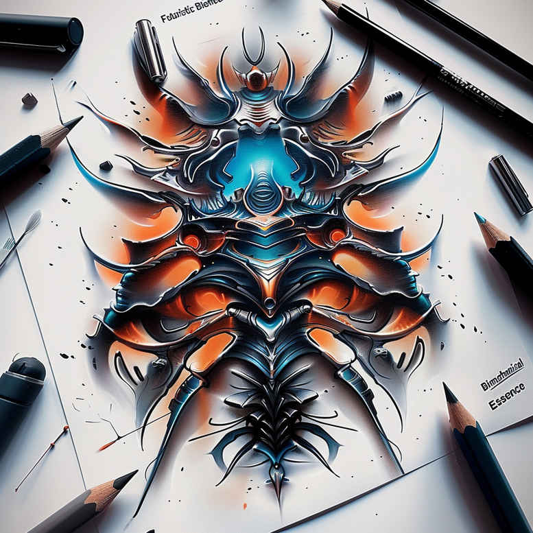 biomechanics tattoo design ideas clean fill layered textures for thigh