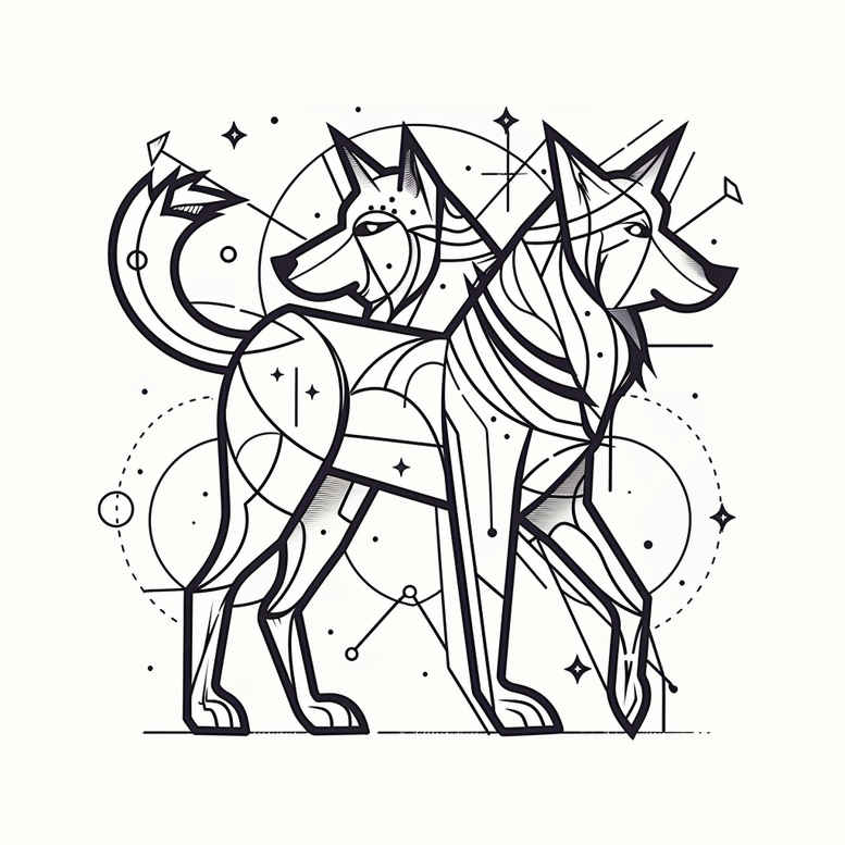 This minimalist tattoo design presents two wolves intertwined in geometric linework, rendered in clean black ink on a white canvas. This is a tattoo gallery with minimalist tattoo designs. The composition relies on angular facets and smooth contours, with circles, arcs, and dotted accents forming a subtle halo around the animals. The pair stands back-to-back in a balanced stance, conveying partnership, loyalty, and shared instinct—themes often explored in meaningful tattoos about family, protection, and inner duality. The linework is precise and continuous, with fine lines creating a sense of motion, energy, and restraint. External circular motifs offer unity and cyclical time, echoing nature’s cycles and the pack’s enduring bonds. The minimalist aesthetic makes the design versatile for placement on the forearm, calf, or back, thanks to its modularity: wolves can be scaled or split to fit different canvases without losing the integrity of the motif. As an AI-generated concept, this piece emphasizes precision and reproducibility while remaining human in its symbolism: wolves symbolize guardianship, loyalty, and keen instinct; the geometric framework introduces modernity, clarity, and balance. The black and grey palette preserves crisp contrast typical of fine line tattoo work, supporting longevity and readability. For those seeking a small-to-medium statement, this design offers a timeless narrative of resilience and companionship, inviting personalization such as adjusting circle spacing or adding subtle dotwork to enhance texture. Pattern repetition is a deliberate feature here, reinforcing rhythm and cohesion across the composition and making it suitable for a cohesive sleeve or chest panel if expanded, yet never losing its minimalist core. With respect to tattoo culture and design trends, it aligns with a broader move toward clean geometric storytelling—perfect for fans of Japanese style tattoo and contemporary black and grey linework. The combination of animal symbolism and geometric patterning invites contemplation about freedom, leadership, and harmony with nature. This design is part of a tattoo gallery with minimalist tattoo designs. Occasionally, the tattoo designs are AI-generated, reflecting a fusion of algorithmic precision and artistic vision. It remains a strong example of a custom tattoo design that can be adapted for cover-up or expanded into larger work if desired.