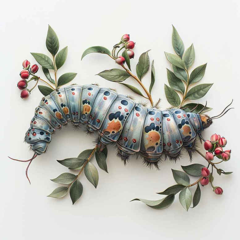 This AI-generated tattoo project concept presents a watercolor-inspired illustration of a caterpillar traversing a slender branch adorned with emerald leaves and clusters of red berries. The design emphasizes soft gradients, translucent washes, and meticulous detailing to evoke a painterly, natural look that translates well into a wearable tattoo design. The caterpillar features a blue-gray segmented body with tiny orange spots, creating a playful yet tactile texture that invites close inspection and suggests a lifelike presence on the skin. The surrounding branch and foliage provide a botanical frame that anchors the creature while contributing to a balanced, open composition suitable for placement on the forearm, calf, or shoulder blade. Symbolically, metamorphosis and growth are conveyed through the caterpillar’s journey along the branch, a motif often chosen for meaningful tattoos representing change, patience, and new beginnings. The color palette—cool blues and greens punctuated by warm red berries—offers contrast that reads well in both color and black-and-grey skin tones when adapted; however, this piece’s watercolor approach favors full color depth and soft transitions that mimic natural light. The work can be rendered in a fine-line tattoo style for a more restrained aesthetic, or expanded into a larger, Japanese-style botanical scene that explores harmony between animal form and flora. For fans of rose tattoo design, lotus flower tattoo, or flowering branches, this concept provides a gentle, whimsical alternative rooted in nature and texture. As an AI-generated tattoo project, it demonstrates how watercolor techniques translate to skin, how delicate patterning of segments can become a feature in tattoo design, and how a small creature on a branch can carry a narrative of transformation. The description also highlights technical considerations for tattoo artists: line weight, color packing, shading gradients, and ink longevity to preserve the soft watercolor effect in a tattoo. Ultimately, this concept offers a versatile starting point for a custom tattoo design that captures both charm and precision, making it suitable for small tattoos as well as larger pieces depending on client demand.