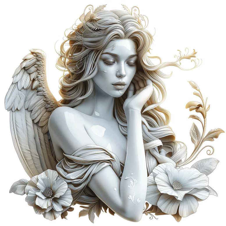 This concept presents an ethereal grayscale tattoo composition featuring a poised angel, wings extended, framed by blossoms and foliage. Executed in black and grey tones, the piece combines realism with soft atmospheric shading to create a contemplative mood. The central figure—an introspective angel—is rendered with delicate linework and nuanced contouring to convey serenity while maintaining readability as a skin tattoo. Surrounding florals appear as blossoms and curling leaves, forming a natural frame that guides the eye toward the figure and adds a sense of gentle motion. The overall design leans toward a classic, timeless aesthetic, making it versatile for placement on the upper arm, shoulder blade, or back, and it lends itself to both compact and larger formats depending on client preference. As a tattoo concept, this design sits well within trends that favor black and grey realism and fine line detailing, yet it remains adaptable for a more stylized approach such as Japanese-influenced shading or a fully realistic rendering. The grayscale palette ensures subtle contrast and longevity, with soft transitions between tonal values that help blend the figure with floral elements. If used as a cover-up, the floral density and the wings offer opportunities to layer new ink over existing patterns while obscuring underlying colors; the concept thus doubles as a practical, cover-up-friendly solution for clients seeking to reclaim space on their skin. The symbolism is classic: the angel evokes protection and guidance, the flowers symbolize renewal and beauty, and the interplay of light and shadow suggests inner peace. For studios, the design can be scaled and adapted—adding a lotus for an infinity tattoo motif, or weaving in subtle geometric accents for a modern twist—while retaining the core story of guardianship and growth. This AI-generated tattoo project illustrates how digital ideation can seed bespoke tattoo planning, providing a detailed blueprint that artists can translate into a refined, hand-poked or machine-inked result. In terms of keyword strategy, this concept aligns with tattoo, tattoo design, meaningful tattoos, fine line tattoo, lotus flower tattoo, infinity tattoo, tribal tattoo, rose tattoo design, small tattoos, flower tattoos, custom tattoo design, Japanese style tattoo, black and grey, realistic tattoo, body art, ink.