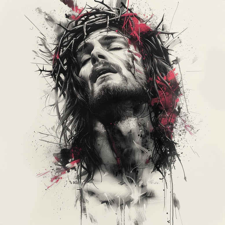 This AI-generated tattoo project presents a compelling Jesus portrait rendered in black and grey with a crown of thorns and a restrained splash of red to evoke sacred blood and martyrdom. The composition centers on a contemplative face, eyes closed, with meticulous line work for luminance and depth, while the crown of thorns threads through the hair with errant spawns of ink that resemble a living halo. The red brushstrokes act as a painterly counterpoint, suggesting divine sacrifice without overwhelming the realism of the portrait, and they frame the figure as if emerging from a storm of faith. A deliberate splatter pattern frames the composition, enhancing the sacred aura while preserving legibility of the portrait. The style leans toward a realistic tattoo sensibility, anchored in high-contrast shading and soft gradients that bring volume to the cheeks, brow, and jawline, yet it embraces watercolor-like splatters to give motion and spiritual aura. This approach makes it suitable not only as a standalone religious image but also as a strong cover-up piece for someone seeking to transform previous tattoo work with a solemn, sacred narrative, and the design is crafted with the intention of aging gracefully on skin. Key elements include the jesus portrait, crown of thorns, red splash, hair, beard, and eyes closed; all are executed in black and grey with subtle red accents, providing a timeless look that resonates with devotion. The concept nods to traditional religious iconography while embracing contemporary tattoo aesthetics—fine line precision, soft shading, and painterly bursts that invite close inspection. In terms of technique, crisp contour lines around the features, layered grey washes for depth, and controlled bleeding of red pigment simulate a reverent stain rather than a raw saturation. The result is a meaningful tattoo design that balances reverence with modern body art sensibilities, suitable for a cover-up if the client wishes to replace darker ink with a more radiant testament of faith, and the project remains a testament to craftsmanship achievable in black and grey with accent color. AI origins noted; this is one of many AI-generated tattoo projects designed to explore religious iconography in tattoo form and to showcase how a sacred portrait can be both solemn and striking, a piece that resonates with devotion while staying adaptable for future customization in a full sleeve or back piece. Keywords: tattoo, tattoo design, meaningful tattoos, black and grey, realistic tattoo, custom tattoo design, body art, ink.