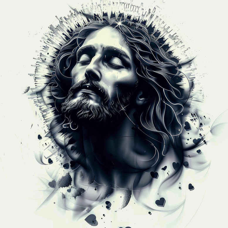 This AI-generated tattoo project presents a darkly compelling Jesus portrait rendered in black and grey realism. The central figure exudes a serene, contemplative expression, with the crown of thorns encircling the head and the strands of hair dissolving into a soft ink wash that blends into the surrounding negative space. Meticulous linework frames the brow and jaw, while tonal shading creates a lifelike depth that holds the gaze and invites closer inspection. The crown of thorns is depicted with precise, fine lines that catch light and convey the weight of sacrifice, endurance, and redemption at the core of Christian iconography. The composition embraces a painterly atmosphere: feathered edges and splatter-like accents ripple outward from the silhouette, giving the piece a sense of motion and spiritual energy without compromising its solemn reverence. Designed for large canvases such as the chest, back, or shoulder, the portrait can be adapted to a smaller area through careful scaling and density adjustments, maintaining readability of the key elements. For anyone seeking meaningful tattoos, this design blends traditional religious symbolism with modern realism, offering a timeless body art statement that speaks to faith and human vulnerability. Its black and grey palette ensures longevity and versatility, making it an excellent custom tattoo design choice for those who value depth, texture, and atmosphere in ink. As an AI-generated tattoo project, the piece emphasizes contrast, texture, and mood, making it a strong candidate for a cover-up where darker tattoos need transformation into a powerful religious centerpiece. The symbolism—Jesus’ sacred humanity, suffering, and redemption—resonates with collectors of meaningful tattoos, while the portrait format aligns with keywords like tattoo, tattoo design, meaningful tattoos, fine line tattoo, black and grey, realistic tattoo, body art, and custom tattoo design.