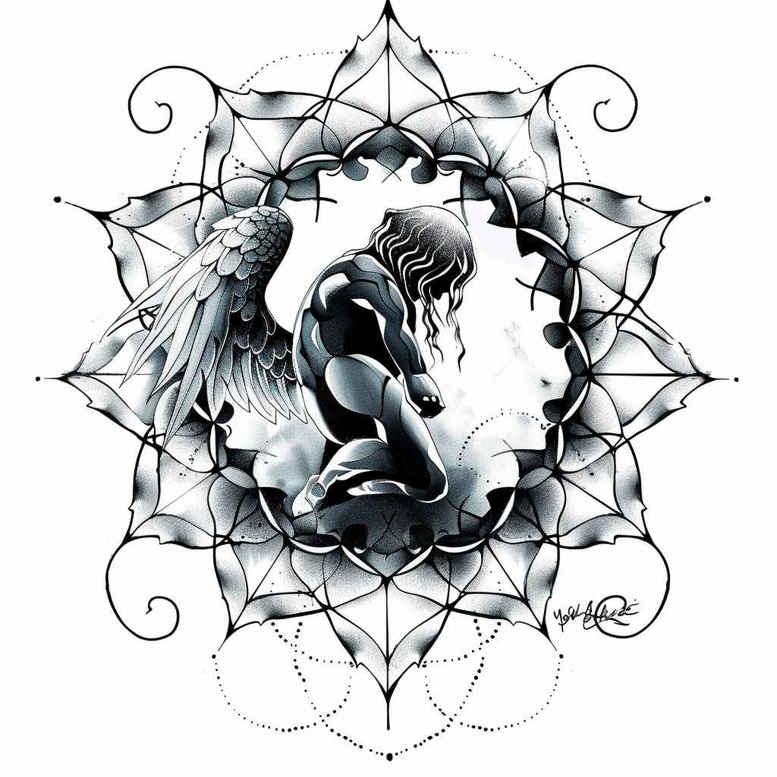 AI-generated tattoo project. This design presents a contemplative meditating figure centered within a geometric mandala and framed by decorative vines. Rendered in black and grey with restrained shading and fine line work, the composition relies on delicate strokes to create depth while preserving legibility on skin. The meditating figure embodies inner peace and mindfulness, with the mandala suggesting balance and spiritual focus; the surrounding vines imply growth and connection. The circular motif anchors the piece and makes it versatile for small tattoos or larger placements such as the forearm, shoulder, or back. Although compact, the design carries meaningful tattoos potential for those seeking introspection and symmetry, and it nods to Japanese style tattoo aesthetics through precise line control and geometric rhythm. In practice, this tattoo design translates well as a standalone concept or as part of a larger sleeve, and it can be adapted to incorporate additional motifs such as lotus flowers or minimalist floral accents while maintaining its black and grey readability. Because of the dense shading in the outer frame, this concept doubles as a cover-up option, allowing an existing ink to be replaced with a darker silhouette that retains intricate detail. From a production perspective, the pattern-centric mandala combined with organic vines offers strong ink retention and a timeless silhouette, suitable for both discrete and statement placements. This description reflects an AI-generated tattoo project that illustrates how algorithmic design can produce mature, market-ready tattoo concepts for ink enthusiasts seeking meaningful tattoos, fine line tattoo technique, and classic black and grey body art.