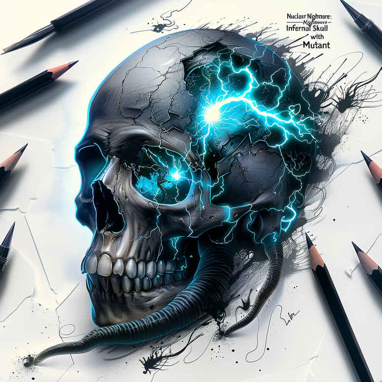This dark, high-contrast skull tattoo design is rendered in black and grey realism with electric blue lightning weaving around the cranium. The piece relies on smooth gradients, crisp linework, and restrained contrast to achieve a lifelike skull while maintaining bold readability from a distance. The blue bolts act as a luminous counterpoint to the monochrome shading, giving the composition energy without turning the image into a colored illustration. The pattern created by the lightning lines adds rhythm across the canvas, a feature that supports both small tattoos and larger back or sleeve adaptations. The concept is intentionally versatile as a tattoo design: the skull can anchor a strong personal statement or be integrated with other elements such as a lotus flower tattoo or tribal motifs if the client desires a custom tattoo design that reflects a meaningful story. For those seeking a cover-up, the deep blacks and broad areas of shading are ideal for concealing underlying ink, while the lightning pattern can be extended or reworked to harmonize with existing pieces. From a technique perspective, the artist negotiates between soft transitions in the shadows and precise edge definition, using stippling in the darkest zones to simulate bone texture and age. The symbolism is straightforward yet potent: the skull often denotes mortality, rebirth, and resilience, while the electric energy embodies transformation and inner spark. The design remains faithful to the aesthetics of black and grey tattoo traditions while embracing a modern graphic punch that is well-suited to Japanese style tattoo or a contemporary realist approach. In terms of context, this tattoo design can be scaled to fit various body regions, from a compact forearm piece to a commanding back tattoo, while maintaining clarity of the lightning pattern and skeleton anatomy. Ultimately, this AI-generated tattoo project demonstrates how a carefully composed dark image can become a compelling body art statement, offering a ready-made cover-up solution for clients who want meaning, impact, and timeless style in a single tattoo design.