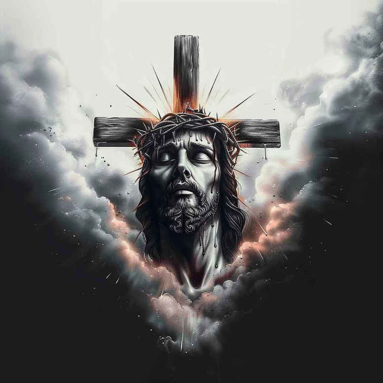 Presented as an AI-generated tattoo project, this composition reimagines Jesus on the cross in a solemn, modern body art aesthetic. The cross dominates the scene with a stark silhouette and subtle grain, while the figure’s face is rendered with careful shading to convey calm, mercy, and endurance. Stormy clouds swirl around the form, framing the sacred moment rather than obscuring it, and a halo of light radiates behind the head to emphasize redemption and hope. Rendered in black and grey, the design relies on layered gradients, crisp line work, and soft transitions to create depth and texture. The result is a timeless tattoo design that reads well on large canvases such as the back or chest, yet can be adapted to smaller areas for a bold, faith-centered piece. Symbolically, the cross represents sacrifice; Jesus embodies forgiveness and compassion; the clouds signify trial and mystery; the radiant light signals divine guidance. For meaningful tattoos, this concept offers a classic icon rendered with modern realism, a versatile blend of tradition and technique suitable for black and grey realism, ink longevity, and timeless body art. If cover-up is a goal, the dense blacks and smoky shading provide strong opacity to conceal older ink beneath while preserving the sacred message. As an AI-origin concept, it demonstrates how technology can curate sacred art that respects tradition while embracing current trends in tattoo design, including meaningful tattoos, custom tattoo design, and realism work. It can be expanded with additional elements such as a subtle infinity knot or floral accents for personalization, while keeping the core religious message intact.