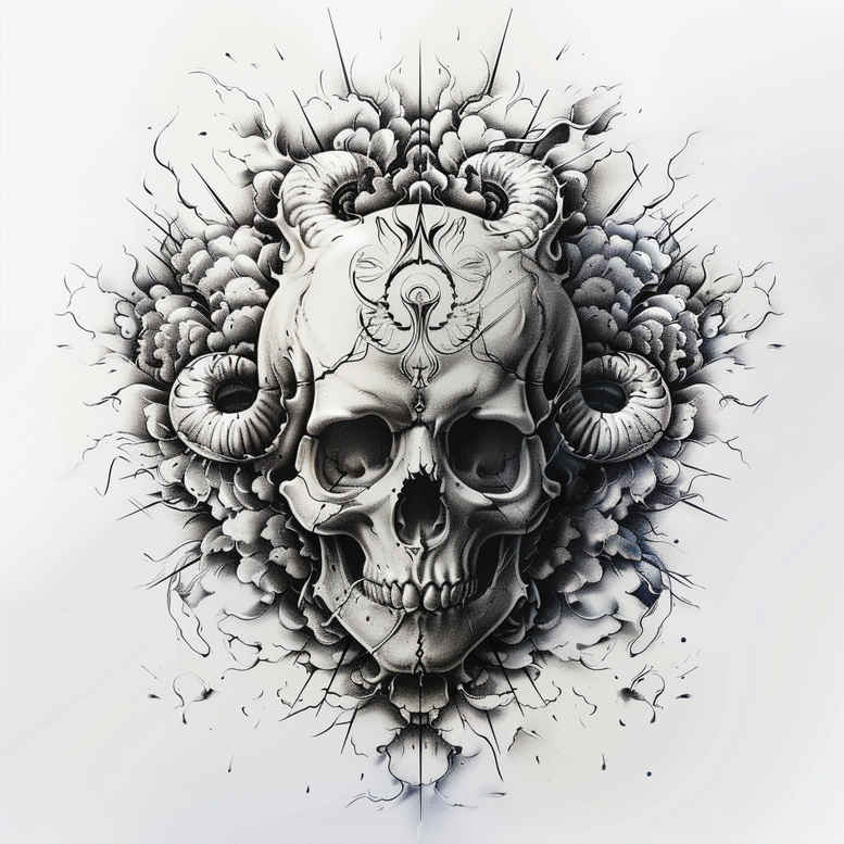 This AI-generated tattoo project concept presents an intricate skull entwined with roses in a rich black and grey palette. The central skull is rendered with crisp linework, careful cross-hatching, and subtle stippling to achieve a lifelike yet stylized appearance, while the surrounding roses and curling leaves form a dense, frame-like bouquet that draws the eye toward the skull’s high-contrast center. The background employs light splatter texture and soft gray gradients to create depth without overpowering the main subject, a balance that is ideal for a refined piece of body art. Executed in a fine line tattoo approach, the piece relies on careful line weight, deliberate negative space, and meticulous shading to translate cleanly on skin, ensuring legibility over time. The design reads as both somber and triumphant, pairing mortality imagery with botanical growth—an enduring motif in meaningful tattoos that resonates with themes of renewal and resilience. As a cover-up concept, its dark foundation and dense blackwork make it an excellent candidate to mask older ink or discoloration, while offering a fresh focal point for placement on the chest, back, or upper arm. Being an AI-generated tattoo project, it serves as a flexible starting point for customization: clients can adjust scale, line weight, and petal detail to suit personal preferences and skin tone. The symbolism is reinforced by the rose as a symbol of beauty and life’s fleeting nature, paired with the skull as a reminder of endurance; combined, they form a timeless emblem that can be tailored to individual stories. From a practical standpoint, this design embraces a classic Japanese-inspired sensibility through restrained shading and naturalistic floral forms, while staying firmly within the modern black and grey realism realm that tattoo enthusiasts seek. In the broader context of tattoo art, the concept aligns with trends in fine line tattoo, small tattoos, and flower tattoos, while offering potential paths for expansion into larger pieces or sleeves. And for anyone considering a true cover-up, the combination of stark shadows, precise line work, and a natural floral frame provides a proven blueprint for transforming worn or unwanted ink into a fresh and meaningful body art statement. It also leaves room for additional motifs such as a lotus flower tattoo or an infinity tattoo to extend the meaning. The technician-level detail of the petals, the delicate veil of shading between bone and blossom, and the composition’s balance between light and dark all contribute to a strong, timeless design. The resulting tattoo design can be realized in multiple sizes, from a compact chest piece to a larger back layout, depending on client goals and skin tone.