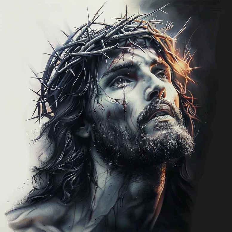This AI-generated tattoo project presents a monochrome portrait of a bearded figure adorned with a crown of thorns, rendered in black and grey to capture mood and reverence. The central gaze is directed upward, suggesting contemplation, endurance, and spiritual longing. The crown of thorns, its jagged ring circumscribing the brow, embodies sacrifice and redemption, a motif timeless in religious tattoo design. Executed with subtle line work and smooth tonal transitions, the image reads as a high-contrast study in light and shadow, appropriate for realistic tattoo translation on the skin. The composition relies on depth created by layered shading, use of negative space, and a restrained grayscale palette, making it suitable for a cover-up on areas requiring concealment of prior ink. The piece embraces classic black and grey aesthetics, yet the glow of highlights on the brow and cheek adds a cinematic feel, reminiscent of traditional religious imagery while remaining modern. In a portfolio of meaningful tattoos, this design functions as a bold statement piece and a personal icon of faith. As a custom tattoo design, it translates well into a large single-session work or a refined memorial sleeve, depending on placement. For those seeking a small or mid-sized tattoo design with profound symbolism, this concept offers a timeless reward: a crown of thorns motif serving as a daily reminder of hope and resilience. The AI origin note emphasizes that these are AI-generated tattoo projects, exploring how digital artistry can be refined into tattoo-ready line work and shading. Key elements to tag include crown of thorns, face, hair, beard, and the overarching black and grey realism; the design harmonizes with other religious symbols while remaining adaptable to Japanese style or traditional black and grey tattoo approaches.