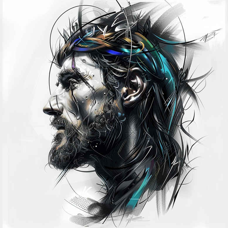 This AI-generated tattoo project presents a stark black and grey portrait of Jesus, framed by a crown of thorns that encircles the brow, with windswept hair and a textured beard. Executed in a realistic style, the design relies on a disciplined grayscale palette, fine line detail, and subtle gradient shading to render lifelike skin tone, contour, and hair texture. The crown of thorns serves as a potent symbol of sacrifice, redemption, and steadfast faith, turning suffering into a personal vow to endure and persevere. The composition emphasizes both drama and reverence: strong negative space around the jaw and cheek allows the gaze to anchor the viewer, while cross-hatching and feathered shading add depth and atmosphere, making the tattoo suitable for placement on the shoulder, chest, or back as a bold focal piece or a commemorative portrait. Because the image contains dense dark areas, it is especially well-suited as a cover-up option for existing tattoos, enabling a transformative redo that preserves line work while concealing prior ink. The piece integrates seamlessly with modern trends in meaningful tattoos, including black and grey portraits, religious ink, and large-scale body art. It also aligns with the broader lexicon of tattoo design—custom tattoo design, Japanese-style influences, and realistic tattoo techniques—offering a timeless narrative of faith captured in ink. The AI-generated origin note highlights that the concept is born in digital collaboration, ready to be tailored for size, line thickness, and detail density to honor the wearer’s vision while maintaining reverent symbolism. Keywords for discovery include tattoo, tattoo design, meaningful tattoos, fine line tattoo, lotus flower tattoo, infinity tattoo, tribal tattoo, rose tattoo design, small tattoos, flower tattoos, custom tattoo design, Japanese style tattoo, black and grey, realistic tattoo, body art, ink.