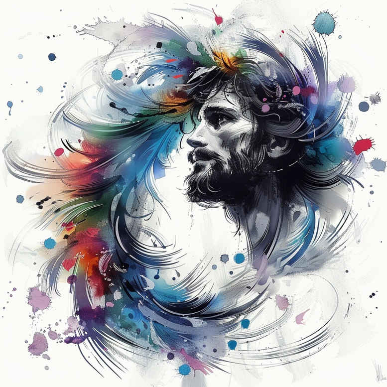 An evocative Jesus portrait rendered in watercolor, this tattoo design fuses sacred iconography with contemporary pigment flow. The central figure is rendered in profile, the jawline and brow defined with delicate line work to evoke a timeless, reverent presence, while surrounding color swirls—blues, crimsons, golds—wash through the air like a halo of light. The technique blends fine line drawing for the facial features with broad, painterly washes that read as an intentional abstraction rather than a photographic replica. This juxtaposition creates a dynamic tension: the sacred, serene face anchored by practiced inkwork, and the exuberant splash of color that radiates emotion and energy, suggesting divine grace breaking into the material world. The visible elements—face, hair, and paint splashes—together communicate a narrative of faith, sacrifice, and resurrection; the hair flows as if touched by wind, mirroring the flow of the pigment and the spiritual breath that surrounds the subject. The color palette leverages full color vibrancy to emphasize mood rather than literal realism, making it a versatile option for both bold body art and more discreet placements in the future; yet the composition remains legible at smaller scales thanks to the strong silhouette of the profile and the controlled contrast between light skin tones and saturated hues. Symbolically, the face stands as a vessel of devotion, while the kaleidoscopic background channels the idea of divine presence entering human life, a theme well-suited to meaningful tattoos and custom tattoo design briefs for individuals seeking a public testament of faith. In the context of tattoo history, this piece nods to Japanese-style tattoo emphasis on flowing composition and intentional negative space, while staying firmly within a modern watercolor language that reads well in black and grey alternatives if desired. Its immortally resonant subject matter makes it a compelling choice for lovers of timeless iconography and contemporary ink alike, a true AI-generated tattoo project that demonstrates how sacred symbolism can be harmonized with vibrant, eye-catching body art. The piece ultimately invites the wearer to carry a message of hope, compassion, and spiritual strength through art that is both deeply personal and aesthetically expansive.