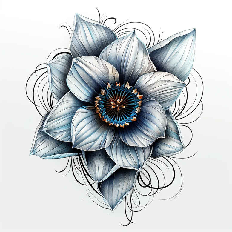 Rendered in clean, high-contrast linework, this blue lotus flower tattoo design showcases a refined study in fine line technique. Each petal is traced with deliberate lines and tinted with layered blue gradients, while the central receptacle is dotted to create subtle texture against crisp black outlines. The surrounding tendrils weave in and out of the bloom, forming a decorative, pattern-like frame that lends the piece a contemporary edge. Symbolism centers on purity, enlightenment, and rebirth, with the lotus motif rising from water toward light—an archetype popular in meaningful tattoos and Japanese style tattoo imagery. The color palette relies on saturated blues with cool gray shading to preserve legibility on a range of skin tones, making this a true full-color interpretation rather than a black and grey study. Designed as a small-to-mid sized work, it suits placements on the forearm, shoulder, or calf, while staying scalable for larger compositions or a sleeve joint with complementary elements like waves or koi for a cohesive body art story. For tattoo artists, the concept provides a clear blueprint for line weight, negative space, and color layering, supporting a custom tattoo design that remains elegant as a standalone piece or integrated into broader flower and water motifs. In practice, the blue lotus conveys calm strength and resilience, aligning with ideas of meaningful tattoos, flower tattoos, and ink-based storytelling. This design pairs well with modern aesthetics while nodding to traditional Japanese influences, and it remains a versatile option for clients seeking a precise, stylish tattoo that stands the test of time. If desired, variations could include additional petal detailing or a softer halo to enhance contrast on lighter skin, while preserving the core fine-line emphasis that defines this concept as a dedicated tattoo design. This is an AI-generated tattoo project crafted to inspire personal expression.