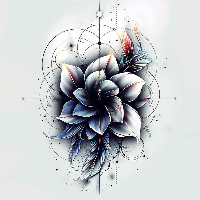 This concept presents an elegant lotus flower tattoo design fused with geometric mandala geometry, a study in contrast between organic form and precise line work. The central lotus emerges from a tight core of petals, each petal rendered with fine line shading to create a soft gradient from midnight edges to pale blue-grey centers. Surrounding the blossom, circles, arcs and intersecting lines build a mandala-inspired scaffold that provides rhythm, balance and focus, while leaving negative space to preserve clarity on a range of skin tones. The palette leans toward blue-grey and bold black ink, a treatment that reads as black and grey with a contemporary color lift, suitable for both refined black and grey applications and subtle color tattoos. The technical approach emphasizes clean, sustainable line weight, incremental shading and stippling to create depth without losing the delicate feel of the design, making it well-suited for small tattoos or expanding into a larger piece such as a sleeve. Symbolically, the lotus represents purity, enlightenment and resilience, while the mandala conveys harmony, wholeness and a journey toward inner balance; together they form a meaningful tattoo concept that resonates with personal growth and spiritual intent. This AI-generated tattoo project demonstrates how algorithmic drafting can inspire meaningful tattoos and custom tattoo design, offering a springboard for tattoo artists to tailor line weight, shading and color saturation to individual clients. For tagging and adaptation, the main elements to note are flower, petals, mandala, circle and dot; the underlying geometry and linework support a wide range of placements from wrist to back, and the combination of botanical form with geometric precision aligns with trends in fine line tattoo, black and grey and modern body art. The resulting piece is a versatile, timeless motif suitable for flower tattoos and lotus flower tattoo fans seeking a refined, elegant composition that bridges organic beauty with geometric order, a true example of the current blend of ink, design and craft.