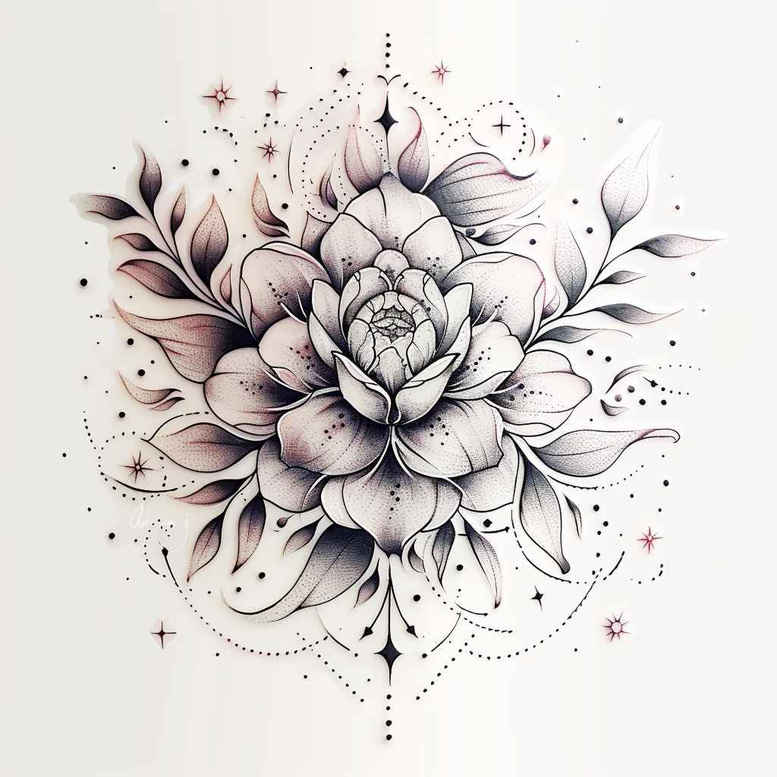 AI-generated tattoo project presented here features a meticulously drawn rose at the heart of a mandala, rendered in black and grey fine-line technique. The central rose is shaded with delicate gradations to convey depth, while slender geometric spokes extend outward to create a balanced symmetry that anchors the composition. Leaves and petals radiate in layered fashion, giving a sense of movement and organic tension against the rigid mandala framework. This design blends classic floral symbolism with modern linework, inviting interpretations such as renewal, beauty, and resilience. As a tattoo design, it functions well as a stand-alone piece or as a cover-up companion to existing work, thanks to the dense black shading and intricate linework that can obscure underlying ink. The pattern-like arrangement is a hallmark of this piece, echoing traditional mandala and lotus motifs while pushing toward a contemporary aesthetic suitable for small or mid-scale placements on the arm, forearm, back, or chest. In terms of technique, the artist employs precise needlework to achieve ultra-fine lines, crisp edges, and smooth transitions between light and dark areas; this is especially important for maintaining readability on skin over time. The composition includes a lotus-like circular hierarchy, subtle infinity-like spirals at the perimeter, and a refined balance between positive and negative space, ensuring longevity of the tattoo design. Keywords: tattoo, tattoo design, meaningful tattoos, fine line tattoo, lotus flower tattoo, infinity tattoo, tribal tattoo, rose tattoo design, small tattoos, flower tattoos, custom tattoo design, Japanese style tattoo, black and grey, realistic tattoo, body art, ink. Because the image originates from an AI process, this is an AI-generated tattoo project that demonstrates how robotic design tools can inspire sophisticated body art concepts. The result is a versatile and elegant piece suitable for clients seeking a refined floral motif with timeless appeal and the possibility of a future cover-up option.