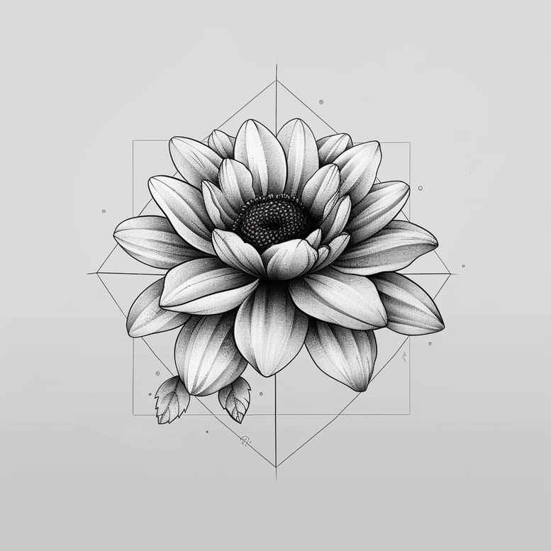 Designed as an AI-generated tattoo project concept, this image presents a lotus blossom anchored by a geometric diamond frame. The central lotus is rendered in fine line black and grey shading, its petals delicately layered to suggest depth and softness while preserving clean linework suitable for a tattoo. Beneath the bloom, a geometric diamond outline anchors the composition, creating a modern contrast that emphasizes symmetry and precision. The combination of natural floral form and geometric geometry evokes themes of growth, balance, and mindfulness, making for a meaningful tattoo design for those who value harmony between organic beauty and structured order. The lotus has long symbolized purity, enlightenment, and resilience; paired with the diamond geometry, it could signify clarity shaped through disciplined practice. The piece leans into fine line technique, with soft gradient shading to imply depth without heavy shading; small tattoos enthusiasts often appreciate its subtlety. While the main motif is delicate, the strong silhouettes ensure legibility on forearms, wrists, or ankles. The black and grey palette ensures timelessness and compatibility with different skin tones; the linework remains crisp with proper needle selection, while the negative space around the petals enhances readability. Visually, the tattoo design balances soft botanical curves with the angular geometry of a diamond lattice, creating a pattern that can be adapted into a larger sleeve or a discreet cap line piece. This concept is versatile and suitable for a cover-ready layout if desired, and serves as a robust baseline for a custom tattoo design. In summary, the composition uses lotus symbolism, geometric patterning, and refined fine line technique to deliver a contemporary, meaningful tattoo concept for those seeking small tattoos or a statement piece with cultural resonance. AI origin remark included to indicate this is an AI-generated tattoo project concept.