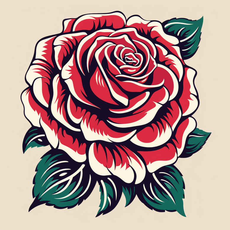 This rose tattoo design presents a lush red rose with layered petals and deep green leaves rendered in bold black outlines and smooth color shading. Created as a versatile concept for a tattoo design, it emphasizes classic floral form with a touch of realism while staying suitable for a range of styles from traditional to neo-traditional. The central rose is built with curved petal edges, white highlights, and subtle gradient reds to recreate the velvety texture of fresh blooms. Leaves extend behind with crisp veins, giving contrast and depth. The artwork reads as a single cohesive blossom that can be adapted in size for small tattoos or scaled up for larger canvases. The linework balances solid saturated color with gentle shading to preserve readability on the skin over time; the black outlines anchor the image, while the color palette reinforces the strong silhouette. In a tattoo studio, this design could be inked in color or reimagined in black and grey for a more understated effect. The rose tattoo design often carries meanings of love, passion, renewal, and beauty; it can be integrated with other motifs such as infinity symbols, lotus flower tattoo, or tribal lines to customize a meaningful tattoo. Though primarily a floral subject, the composition can be positioned along the shoulder strap, forearm, or calf, appealing to clients seeking small tattoos or larger wrap-around pieces. This concept aligns with contemporary preferences for realistic tattoo shading and clean, crisp execution that stands up to the rigors of aging; it also suits black and grey renditions. For those exploring ink ideas, this project presents a refined rose tattoo design with strong contrast, suitable for a cover-up if desired by the tattooist, or as a standalone centerpiece in color. The piece resonates with fans of flower tattoos, fine line tattoo techniques, and the broader idiom of meaningful tattoos, offering a flexible platform for a custom tattoo design that can be integrated into Japanese style tattoo or blended with elements such as lotus flower tattoo or infinity for personalized body art, and realized in ink. AI-generated tattoo project concept for inspiration, blending traditional craftsmanship with modern digital refinement and inviting further customization toward a unique small tattoo or larger sleeve piece.