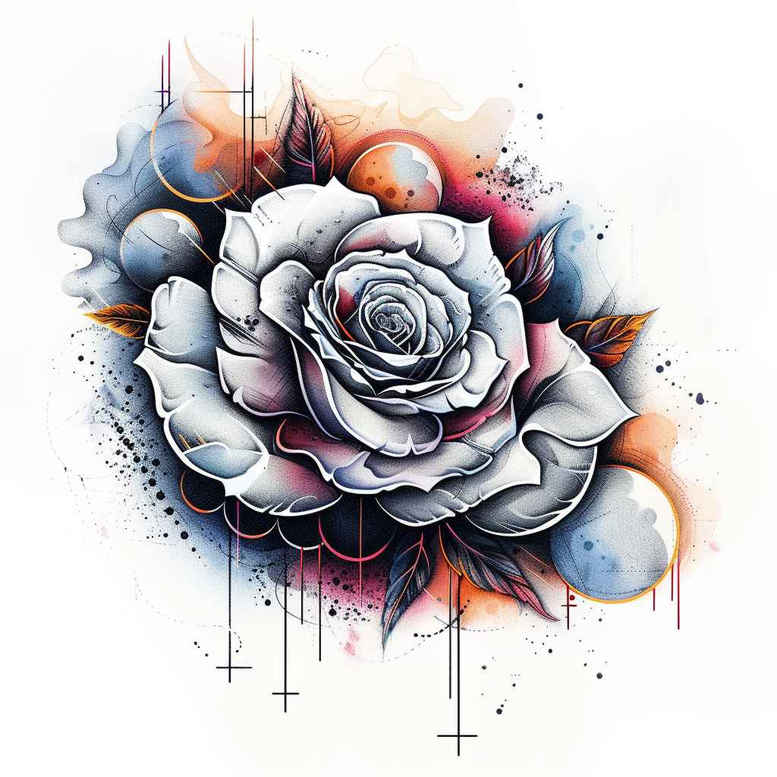 This concept presents a rose rendered in grayscale shading with careful fine line work, overlaid by a watercolor wash and a network of geometric lines that create a deliberate pattern. As an AI-generated tattoo project, it blends classic floral symbolism with contemporary line geometry to offer a flexible tattoo design option for both small tattoos and larger body art. The rose tattoo design embodies renewal and beauty, while the surrounding pattern adds rhythm and modern edge, making it suitable for a variety of placements and preferences. The piece leans toward black and grey realism, yet the watercolor backdrop introduces a painterly softness that can be intensified or toned down to suit skin tone and personal taste. This approach invites a wide audience seeking meaningful tattoos, from flower tattoos to more extensive compositions, and it pairs well with future additions such as a lotus flower tattoo, infinity tattoo, or tribal tattoo motifs. For clients pursuing a custom tattoo design, the balance between bold silhouette and delicate shading ensures readability on demand and compatibility with Japanese style tattoo sensibilities when scaled. The work emphasizes line quality, negative space, and ink density to achieve depth, while the pattern elements invite integration of additional motifs without overcrowding the composition. Although not overwhelmingly dark, the design remains versatile for cover-up scenarios if needed, and its adaptable palette makes it a practical starting point for inking on scars or blemishes. In short, this AI-generated concept demonstrates how a single rose can anchor a cohesive tattoo design while the surrounding pattern and watercolor wash expand its expressive potential and suitability for a range of clients.