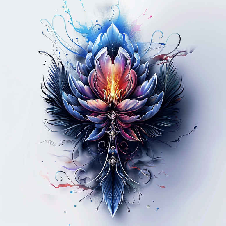 AI-generated tattoo project concept presented in a flowing watercolor study: a lotus blossom rendered in a luminous blue and purple palette with a delicate wash. The central bloom is formed by layered petals that taper to fine points, while wisps of color radiate outward, creating a pattern-like symmetry that would translate beautifully to skin. The design leans into a fine line tattoo ethos with soft gradients, subtle line work, and a gentle glow in the center that evokes spiritual awakening. This concept blends a classical lotus flower tattoo design with modern watercolor technique, making it suitable for a range of placements from forearm to shoulder. The lotus symbolizes purity, enlightenment, and resilience; the turquoise and indigo tones convey calm and depth, while the gradient transitions give volume to each petal. As a custom tattoo design concept, it marries Japanese style tattoo sensibilities—balance and nature—with contemporary ink aesthetics. The piece can be adapted for black and grey by adjusting saturation, or kept vivid with full color; because of its pattern-like repetition, it benefits from careful placement to preserve symmetry. The artwork doubles as a meaningful tattoo concept for those seeking growth, renewal, or a daily reminder of inner strength; it is an ideal subject for small tattoos or larger back or arm pieces, depending on scale. This is an AI-generated tattoo project concept, useful for designers and clients exploring fresh interpretations of floral motifs in tattoo art and body art discourse. Keywords to anchor search: tattoo, tattoo design, meaningful tattoos, fine line tattoo, lotus flower tattoo, infinity tattoo, tribal tattoo, rose tattoo design, small tattoos, flower tattoos, custom tattoo design, Japanese style tattoo, black and grey, realistic tattoo, body art, ink. The piece centers on a lotus motif that can be extended into a broader, pattern-driven artwork if desired.
