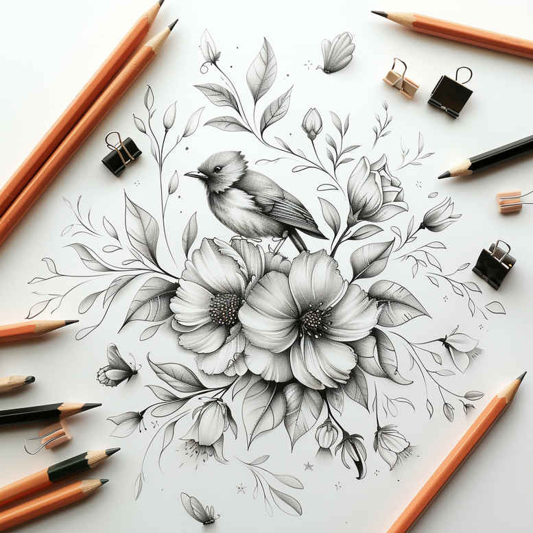 AI-generated tattoo project concept presents a refined fine-line study featuring a bird perched on a lotus, executed in black and grey pencil linework. The composition places a small bird above a blooming lotus, with delicate leaves framing the central motif. The design reads as a stand-alone tattoo idea or as a component within a larger custom tattoo design, suitable for small tattoos on the wrist or behind the ear, and also adaptable to forearm sleeves or back pieces. Technique relies on crisp, light lines for the bird and flower, with subtle shading and cross-hatching to convey form, depth, and texture while preserving negative space for an airy feel. Symbolically, the lotus evokes purity, spiritual growth, and resilience, while the bird hints at freedom, curiosity, and mindful living—elements that resonate with meaningful tattoos. From a stylistic standpoint, the concept nods to Japanese style tattoo sensibilities through natural motifs and graceful proportions, yet remains firmly within black and grey traditions, appealing to fans of realistic tattoo rendering or fine-line aesthetics. The linework supports adaptations into color if desired, or into broader floral scenes for larger placements such as a sleeve or chest piece. In practice, this is a flexible starting point that can be refined into a precise tattoo design for a client, with attention to scale, placement, and line density, while preserving the lotus’s soft geometry and the bird’s silhouette. The motif also invites exploration with infinity tattoo or tribal tattoo elements for extended compositions. Being an AI-generated concept, it serves as a solid foundation for discussions, approvals, and iterations in ink, while allowing room for professional tattoo artists to translate the sketch into a finished piece. Ultimately, this lotus-bird study embodies a meaningful tattoo design concept that suits small tattoos and nature-inspired flower tattoos, yet remains adaptable to various placements and audiences, underscoring the enduring appeal of lotus motifs in body art and ink.