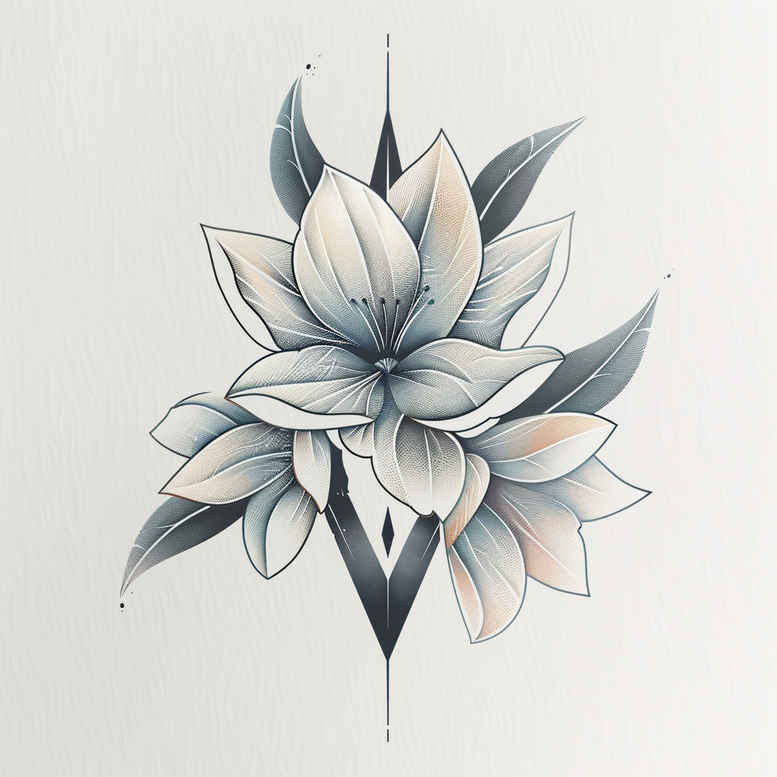 Generated as an AI-assisted concept, this tattoo project presents a geometric lotus theme rendered in precise linework and soft shading. The central lotus is composed of layered petals that graduate from white to cool blue-grey, giving depth while preserving a deliberate minimalism. A geometric diamond motif sits behind the blossom, intersected by slender triangles that converge along a vertical axis, creating a balanced, mandala-like rhythm. The design relies on clean fine-line technique and restrained shading to achieve a crisp black and grey outcome that remains legible on different skin tones. Symbolically, the lotus suggests purity and rebirth, while the angular geometry conveys discipline and symmetry, inviting interpretations of resilience and growth as meaningful tattoos. The composition accommodates a range of placements—from forearm to back—and scales gracefully: the same motifs can be reduced for small tattoos or expanded for a statement piece, maintaining legibility and elegance. From a technical perspective, the petals are built with subtle gradients and feathered edges to preserve softness, while the diamond and triangles are anchored by sturdy outlines to ensure longevity over time. The interplay between organic form and geometric geometry makes this design adaptable to various tattoo styles, including black and grey realism and Japanese-inspired linework, while keeping the motif accessible for custom tattoo design. The color plan centers on black ink with blue-grey tonalities to preserve contrast, ensuring readability on light and medium skin tones. This AI-generated tattoo project demonstrates how graphic patterns can complement natural motifs to create a striking body art piece that remains timeless in an era of trend-driven design. It offers meaningful tattoos with the lotus as a focal point and the geometry as an anchor for a refined, versatile tattoo design.