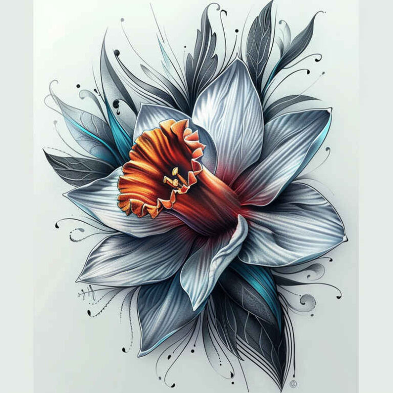 An AI-generated tattoo project concept featuring a single lotus bloom rendered in cool blue-grey petals with a vivid orange center. The design blends crisp line work with watercolor-inspired shading, producing a soft gradient that stays legible at distance while suggesting depth. A patterned shading scheme on each petal uses fine lines and stippling to create dimension without crowding the silhouette. A light spray of specks around the blossom introduces a dynamic pattern element that implies motion yet remains restrained enough for daily wear. The lotus symbolizes purity and resilience, giving the concept meaningful potential for meaningful tattoos or small flower tattoos in visible areas such as the forearm, wrist, or shoulder. Because this is an AI-generated tattoo project, it serves as a flexible starting point for customization: additional blossoms, infinity motifs, or script could be added to expand the idea into a larger sleeve or back piece if desired. Technically, the piece emphasizes crisp outlines, controlled gradient transitions between blue-grey tones, and a bold orange center to anchor the composition. The surrounding negative space ensures readability across skin tones and lighting. While the palette is colored, it can be adapted to black-and-grey for a subtler look, or paired with Japanese-style botanical elements to fit different tastes. For those seeking a refined, meaningful tattoo design, this lotus concept offers a versatile starting point for custom tattoo design that blends botanical realism with contemporary tattoo aesthetics, body art, and ink, and it can be extended toward rose tattoo design or infinity tattoo motifs if desired. The inclusion of a pattern shading approach makes it suitable for clients who value pattern elements in their tattoo.