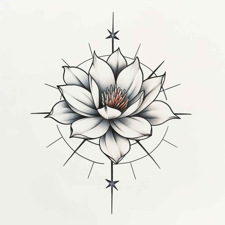 An elegant lotus blossom sits at the center of a precise geometric mandala, executed in black and grey linework with subtle shading that lends the petals a soft, luminous depth. The petals are rendered with fine line technique and restrained cross-hatching to maintain crisp definition while preserving a delicate, organic feel, while the surrounding geometry—spokes, diamonds, and intersecting arcs—forms a structured frame that echoes sacred geometry and a meditative rhythm. This fusion of natural form and architectural motif makes the design versatile: it reads clearly as a small lotus tattoo or can be expanded into a larger composition for a sleeve or backpiece, depending on the wearer’s vision. As a tattoo design, it conveys meaningful tattoo themes such as purity, renewal, and resilience, and it nods to infinity tattoo concepts through continuous geometric loops. The black and grey palette keeps the piece timeless, suitable for a wide range of skin tones, and the steady line weights support longevity. Presented as an AI-generated tattoo project concept, it offers a scalable template for a custom tattoo design workflow and for exploring floral symbolism within a Japanese style tattoo or tribal-inspired reinterpretations. For variations, the lotus could be reimagined as rose tattoo design motifs, or the geometry could be extended into a more ornate pattern, preserving the same bold silhouette. In every use, this lotus geometry fusion provides a refined, modern body art piece that balances botanical beauty with graphic pattern and remains legible and meaningful in ink over time. It also serves as a flexible starting point for personal commissions and iterative client feedback, highlighting the potential of AI-assisted concept generation in tattoo art.