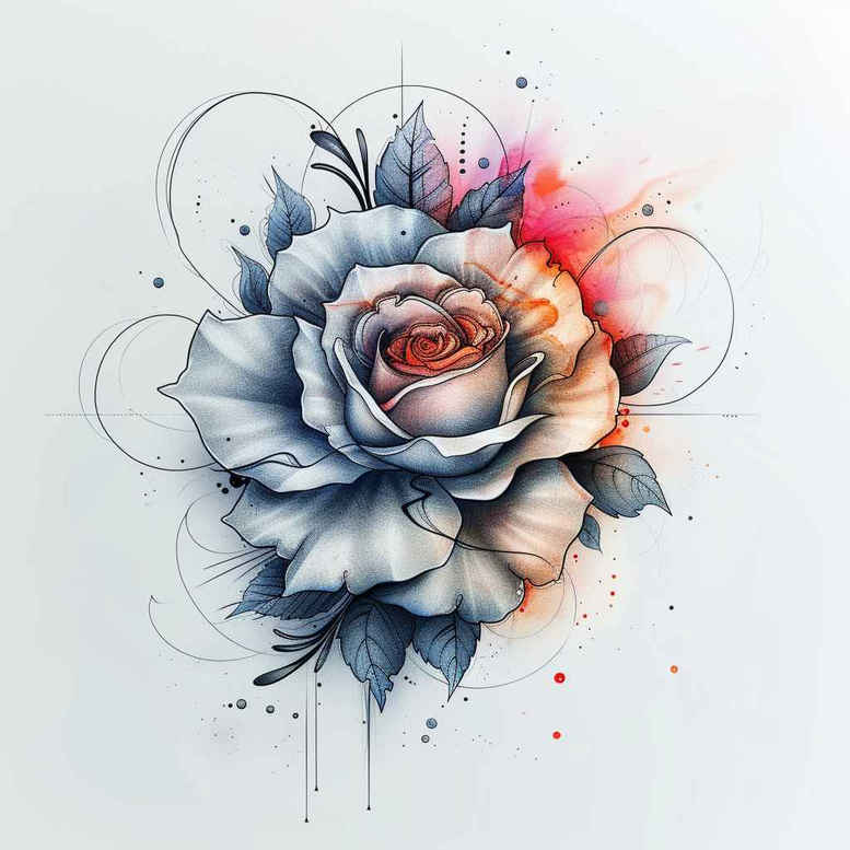This AI-generated tattoo project concept presents a rose rendered in a blue-grey watercolor aesthetic, balancing painterly softness with precise line work. The central bloom unfolds with layered petals, defined by fine black lines and subtle grey shading that build depth while preserving a delicate, airy feel. Watercolor washes spill beyond the petal edges, creating an organic diffusion that keeps the design vibrant yet restrained, ideal for black and grey tattooing. A quiet scaffold of fine lines and gentle loops circles the blossom, adding rhythm without overpowering the bouquet; the result reads as a modern floral piece that pairs well with Japanese-style tattoo sensibilities and contemporary realistic tattoo cues. The composition is versatile for placement on the forearm, shoulder, or upper thigh, and scales gracefully from small tattoos to a more statement-oriented sleeve integration. Symbolically, the rose conveys love, growth, and resilience, and the cool blue-grey palette enhances notions of calm, introspection, and endurance, making this a meaningful tattoo design for someone seeking a refined floral motif with emotional resonance. From a technical perspective, the piece blends crisp linework with painterly shading, leveraging black ink and grey gradients to mimic subtle tonal shifts and depth; it aligns with trends in fine line tattoo and flower tattoos while nodding to Japanese and modern tattoo approaches. For a custom tattoo design workflow, this concept functions as a flexible template: the rose tattoo design can be refined by adjusting petal anatomy, line density, and splash intensity to suit personal aesthetic and skin tone, while preserving the essence of the blue-grey, watercolor-influenced look. If desired, variations can introduce additional motifs such as a lotus flower tattoo or infinity elements to deepen symbolism, or integrate geometric or tribal hints for a more eclectic body art piece. This AI-generated concept invites tattoo artists and clients to explore meaningful tattoos that celebrate floral beauty, timeless style, and the expressive potential of ink.