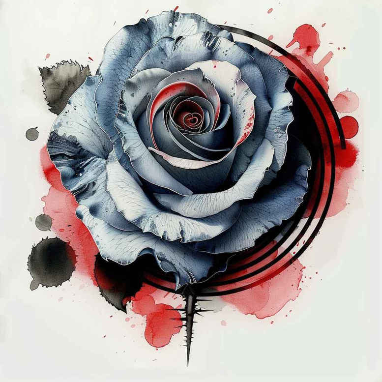 This AI-generated tattoo project concept features a blue rose as the focal point, rendered in black and grey shading and accented by red watercolor splashes and a bold circular ring. The composition fuses botanical realism with painterly abstraction, yielding a modern tattoo design ideal for places such as the forearm, shoulder blade, or calf. The rose is depicted with precise line work and soft gradient shading to convey texture and depth, while the watercolor washes provide movement and color contrast without overwhelming the form. The circular ring serves as a graphic anchor, guiding the eye toward the blossom and creating a sense of momentum that can be extended into a larger piece. The hybrid approach of monochrome petals with selective color makes this concept versatile for a cover-up, especially when concealing earlier dark ink. In terms of style, the concept leans toward watercolor-inspired black and grey, with clean lines and restrained color reminiscent of Japanese style tattoo, yet adaptable to a range of preferences. Symbolically, the blue rose stands for mystery and the pursuit of the extraordinary, while the circle suggests infinity and wholeness, themes frequently explored in tattoo design through infinity tattoos and lotus flower tattoos. The concept also nods to modern trends in small tattoos and flower tattoos, offering straightforward scaling, crisp line weight, and opportunities to add or refine elements such as the ring, splashes, or additional blossoms. For enthusiasts seeking meaningful tattoos, this design presents a refined alternative to traditional rose or lotus motifs, capable of being realized as a fine line tattoo or a bold black and grey piece, and amenable to customization in placement and size. As an AI-generated tattoo project, it demonstrates how generative ideation can translate into tangible body art concepts while balancing readability, composition, and ink distribution. Keywords to consider include tattoo, tattoo design, meaningful tattoos, fine line tattoo, lotus flower tattoo, infinity tattoo, tribal tattoo, rose tattoo design, small tattoos, flower tattoos, custom tattoo design, Japanese style tattoo, black and grey, realistic tattoo, body art, ink.