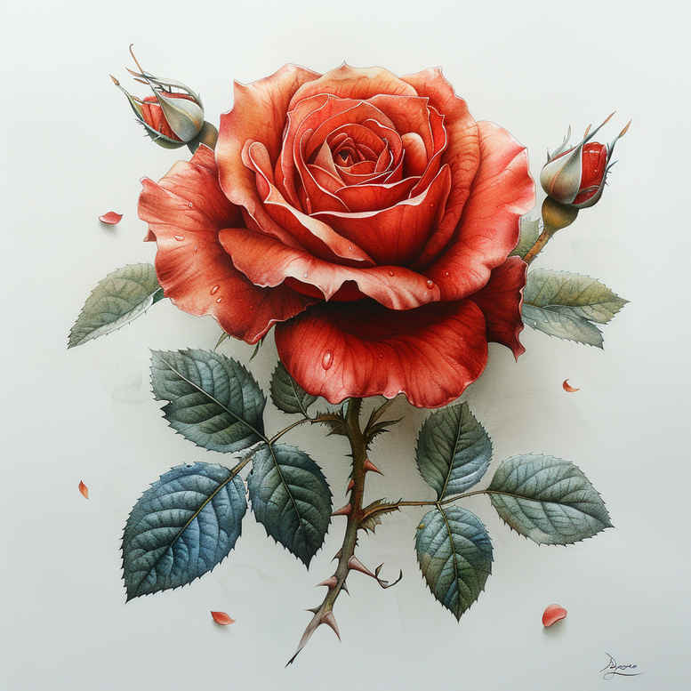 This color study presents a realistic rose tattoo design centered on a single red bloom framed by emerald leaves and a slender thorned stem. Rendered with careful gradation and soft shading, the petals unfold with lifelike curvature, capturing the depth and nuance that define color realism in contemporary tattoo practice. The leaves provide a cooler counterpoint with rich green tones and fine vein lines, while the brown stem anchors the composition and carries a few thorns for natural tension. The overall balance between positive and negative space makes this tattoo design versatile for placement on the forearm, shoulder, or calf, and scalable from a small focal piece to a larger floral sleeve integration. The piece emphasizes clean line work and smooth color blending, prioritizing a photorealistic aesthetic that translates well across sizes and skin tones. Conceptually the rose embodies meanings such as love, beauty, and renewal, while the thorns remind us of resilience; together they convey a timeless narrative in the tattoo world. As an AI-generated tattoo project concept, it serves as a starting point for a custom tattoo design that a skilled artist can adapt to the client’s anatomy and style preferences. Whether you lean toward a traditional Japanese influence or a contemporary, realistic approach, this design can be translated into various tattoo styles and scales. The accompanying keywords—tattoo, tattoo design, meaningful tattoos, rose tattoo design, flower tattoos, custom tattoo design, color realism, realistic tattoo, and ink—underscore its relevance for portfolios, client consultations, and SEO-focused presentations. If you wish, adjustments to color saturation, leaf density, or petal layering can tailor the final piece to suit individual skin tone and body placement. This AI-generated tattoo project is intended to spark conversation and inspire a bespoke, client-tailored tattoo experience, preserving the realism and botanical detail that define a timeless rose tattoo design.