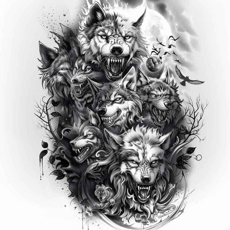 An AI-generated tattoo project presents a dramatic black-and-grey montage where several wolf heads form a circular lupine crest, intertwined with bare branches and a pale moon. The dense shading and negative space are deliberate, creating a bold cover-up-ready composition with a strong focal point. The piece blends realism in the wolves’ fur textures with graphic linework to create a cohesive, pattern-driven silhouette that can adapt to larger canvases such as the upper arm or back. The design emphasizes depth through layered blacks, subtle gradients, and stippled textures that give the wolves a lifelike presence while allowing concealed skin beneath for cover-up applications. In symbolism, wolves evoke guardianship, loyalty, and family; the circle suggests cycles and unity, while the moon hints at mystery and night. From a technical perspective, the concept relies on careful contrast management: solid black blocks anchor shapes, mid-tones sculpt fur and bark, and fine lines delineate eyes, fangs, and branches. The inclusion of branches adds organic frame to the wolves, reinforcing a naturalistic but slightly ominous mood. As a high-contrast, graphic pattern, it enables a dramatic tattoo design with the potential to cover existing tattoos effectively. This concept is presented as an AI-generated tattoo project to showcase the possibilities of algorithm-driven composition and professional execution in black and grey ink. It aligns with trends in dark, meaningful tattoos and can be adapted into a traditional Japanese style influence or kept strictly realistic depending on the client’s preference. For placement, forearm, shoulder, or back provide ample space for the circular arrangement; the piece can be refined with added details or simplified for a smaller form. Overall, this tattoo design exemplifies how a pattern-rich, cover-up-ready, black-and-grey wolf montage can become a meaningful and visually striking body art piece, suitable for a long-lasting, iconic presence. In addition to these elements, the concept invites exploration of related motifs such as lotus flower tattoo, infinity tattoo, tribal tattoo, rose tattoo design, small tattoos, flower tattoos, and custom tattoo design, all within a black and grey, realistic tattoo framework that suits body art and ink.