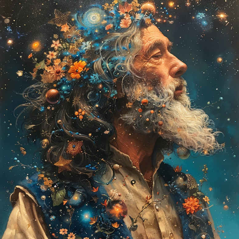AI-generated tattoo projects push imaginative body art into new territory. This concept presents a surreal cosmos portrait that threads a realistic elderly man’s head with a halo of flowers, stars, and nebulae. While the reference image reads as color-rich, the tattoo interpretation described here favors black and grey to ensure timeless durability, strong contrast, and smooth aging of lines. The portrait anchors the composition, while celestial elements arc around the crown and weave into the beard, creating a seamless fusion of portrait and cosmic pattern. Motifs include a temple flower near the temple, a swirling galaxy that links to the beard, and a nebula halo that softens into the hairline, inviting contemplation of memory, time, and exploration. Techniques emphasize fine line precision for facial features, delicate stippling for texture, and gradual shading to render depth without sacrificing legibility on skin. The design scales from small forearm pieces to full-back canvases, with flexible density options: a bold black and grey version for a graphic impact, or a lighter rendering for a more nuanced look. Given the dark background and layered shading, this concept is a strong cover-up candidate that can mask prior tattoos while delivering a compelling focal image. The symbolism—flowers for growth, stars for fate, and the galaxy for vast possibility—gives meaningful tattoos additional resonance for wearers seeking narrative ink. As an AI-generated tattoo project, it demonstrates how digital creativity can inform a custom tattoo design, body art, and ink that remains legible and expressive across placements.