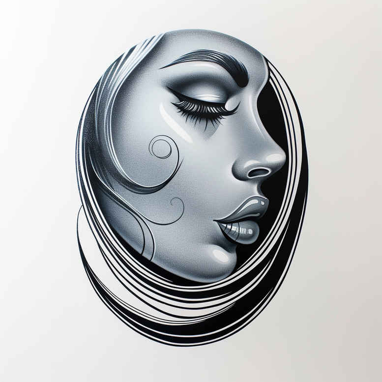 This AI-generated tattoo project concept presents a grayscale portrait of a female face in profile, framed by flowing hair that sweeps around the features. The design prioritizes a refined fine-line approach, with delicate linework defining the eyelid, brow, nose, and lips, and broader black-and-grey shading building volume in the cheek and jawline. The hair cascades in circular, ribbon-like strands, creating movement that guides the eye along the contour of the face and toward the jaw, making this piece versatile for placements such as the shoulder, forearm, or upper back. The high-contrast edges near the hairline deliver a bold silhouette that helps conceal underlying marks when used as a cover-up, while the softer gradient shading in the skin yields a natural skin tone and subtle realism. In terms of symbolism, the portrait evokes introspection and serenity; the closed eye suggests inner reflection, and the flowing tresses symbolize continuity and change. From a technical standpoint, the piece translates well into black-and-grey realism, relying on meticulous line density, smooth gradient transitions, and careful tonal balance to preserve legibility over time. As a modern tattoo design, it aligns with trends in small-to-medium, portrait-inspired pieces that emphasize mood and silhouette without excessive saturation. For artists, it offers a strong foundation for a refined, timeless tattoo design that can be customized for different body areas. This concept balances bold form with quiet detail, enabling expressive linework for a lasting, meaningful tattoo design. The project demonstrates how AI-generated ideas can seed creative exploration while remaining adaptable to traditional tattoo techniques, ink depth, and client-driven symbolism. In practice, translating this concept requires attention to skin tone, needle configuration for fine lines, and post-healing look, ensuring the final result reads cleanly at both close inspection and from a distance. The end goal is a piece that feels like a quiet, confident portrait, a daily reminder of memory and presence expressed through ink.