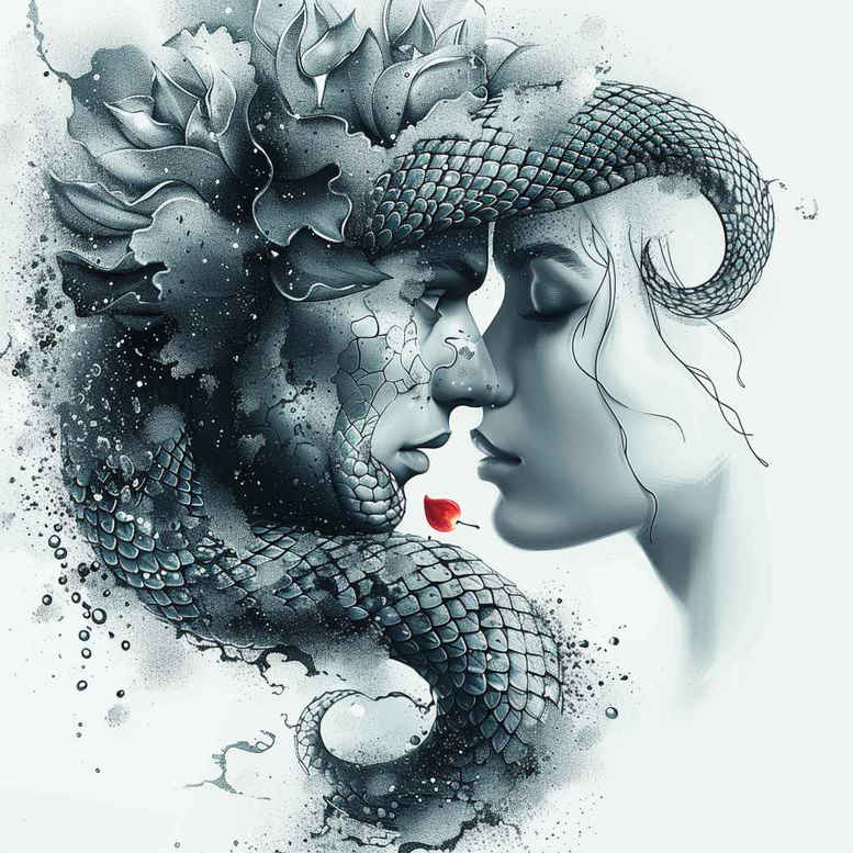 This AI-generated tattoo project concept presents a dark, cinematic fusion of a serpentine dragon and a serene female profile in black and grey. The dragon coils against the face, its scales forming a rhythmic, pattern-driven texture that contrasts with the smooth, pale contour of the woman’s features. Red lips punctuate the composition, serving as a bold focal point that draws the eye through negative space and subtle highlights. The technique combines classic black and grey shading with fine line work to articulate the dragon’s serpentine form and the quiet expressiveness of the portrait, yielding a design that feels both mythic and intimate. The artwork nods to Japanese style tattoo aesthetics through its flowing silhouette and balanced composition, while staying adaptable to different placements on the body. As an AI-generated tattoo project, this concept explores how intricate line work and dense tonal values can be harmonized to create a cohesive piece suitable for larger panels or smaller, highly detailed areas. Because the image is heavy in darkness, the piece is especially suitable as a cover-up option, where the dark forms can be integrated with existing ink to create a seamless transition. Key motifs include the dragon as guardian and the woman’s face as a symbol of grace, with the scales forming a living pattern that adds texture and depth. In practice, this concept can be translated into a custom tattoo design that balances symmetry with organic movement, offering opportunities for micro-detailing in a fine line tattoo approach, while also capable of evolving into a more realistic tattoo style if desired. The listing embraces SEO-friendly terms such as tattoo, tattoo design, meaningful tattoos, fine line tattoo, lotus flower tattoo, infinity tattoo, tribal tattoo, rose tattoo design, small tattoos, flower tattoos, custom tattoo design, Japanese style tattoo, black and grey, realistic tattoo, body art, ink, ensuring discoverability for potential clients seeking cover-up solutions.