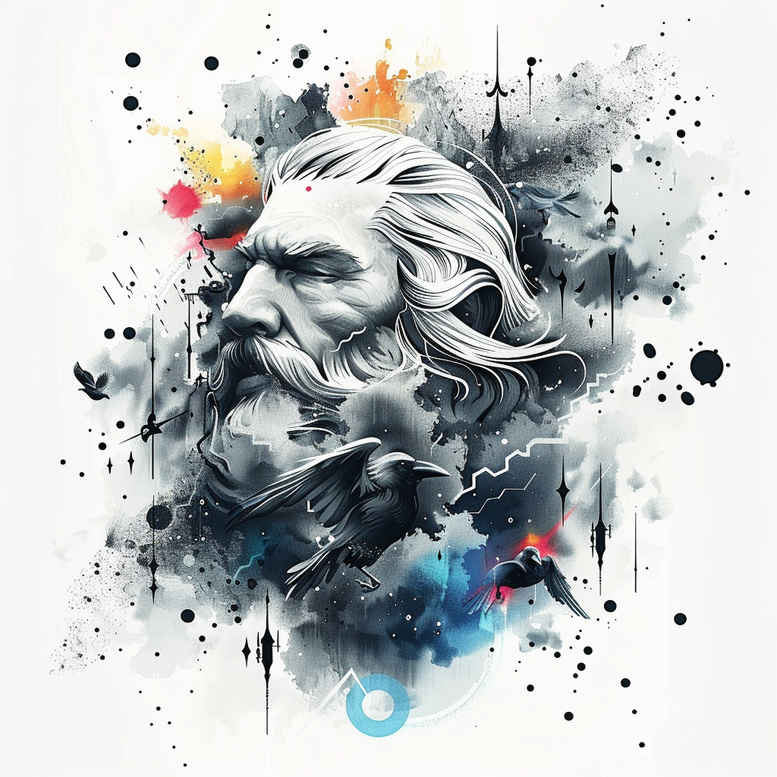 This piece presents a grayscale portrait of a bearded man in profile, anchored by bold line work and smooth gradient shading that elevates the realism of a black and grey tattoo design. The central figure—face, beard, and hair—stands against a painterly wash of watercolor splashes in blue and orange, injecting contemporary energy while preserving the quiet authority of a traditional portrait. The watercolor elements form a subtle pattern around the visage, creating rhythm and texture that translate well to skin and offer scalable options from a compact forearm piece to a full-shoulder canvas. Although the core is photorealistic in its tonal balance, the integration of color splashes creates movement without compromising legibility, a balance highly prized in fine line and realistic tattoo applications. The composition is intentionally dense in tone, making it an attractive option as a cover-up concept where older tattoos or skin imperfections can be integrated into the negative space and reimagined with new ink. Techniques emphasize controlled black contrast, soft gradation, and measured color accents so readability remains across a range of skin tones. The pattern of splatters and drips adds texture and a contemporary edge that complements both traditional and Japanese style tattoo sensibilities, while remaining adaptable to tribal, floral, or single-figure themes depending on client preference. In symbolic terms, the portrait can evoke resilience, wisdom, and renewal, with blue suggesting calm and orange signaling energy or life force. This is an AI-generated tattoo project, meant for professional artists to refine into a custom tattoo design that honors the portrait’s realism while exploiting the bold pattern of watercolor accents. For those seeking a strong cover-up with an enduring motif, this concept provides a solid foundation for effective ink over existing work. The result is a meaningful tattoo concept that blends classic portraiture with modern splatter technique, offering a versatile body art solution that can be scaled and personalized to fit body placement and wearer storytelling.