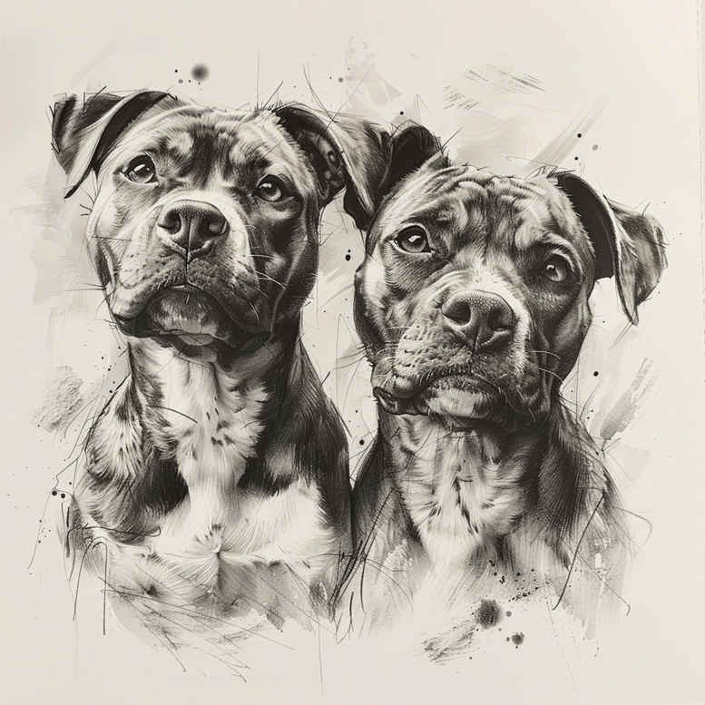 AI-generated tattoo project concept: two dogs rendered in a high-contrast black and grey sketch that reads as a refined portrait for body art. The composition centers on two canine heads with expressive eyes and defined muzzles, framed by delicate ink splatters that lend an organic, painterly edge characteristic of contemporary tattoo design. The technique blends crisp line work with soft shading to achieve a realistic, lifelike appearance within a compact, versatile format suitable for small-to-medium pieces. Key elements include the two dogs, the paired composition, subtle fur texture, and a gentle vignette that keeps focus on the subjects. Symbolically, paired dog portraits honor loyalty, companionship, and memory, making this a meaningful tattoo design for pet lovers and for commemorating a canine companion. The black and grey palette ensures timeless appeal and easy adaptation across skin tones, while restrained shading aligns with fine line and realism styles in modern tattooing. This concept can be realized in various formats, from a single canvas on the forearm to a two-portrait layout on the back or shoulder; it also lends itself to an in memory of theme. The imagery aligns with trends in portrait and animal themes within tattoo culture, offering a flexible base for a custom tattoo design and a strong foundation for a commemorative piece. Note that this description is an AI-generated tattoo project concept, intended to illustrate how such imagery can be translated into a professional tattoo design by a skilled artist. The composition’s symmetry and study of fur texture support potential pattern migration or micro-detail work for fine line tattoo techniques.