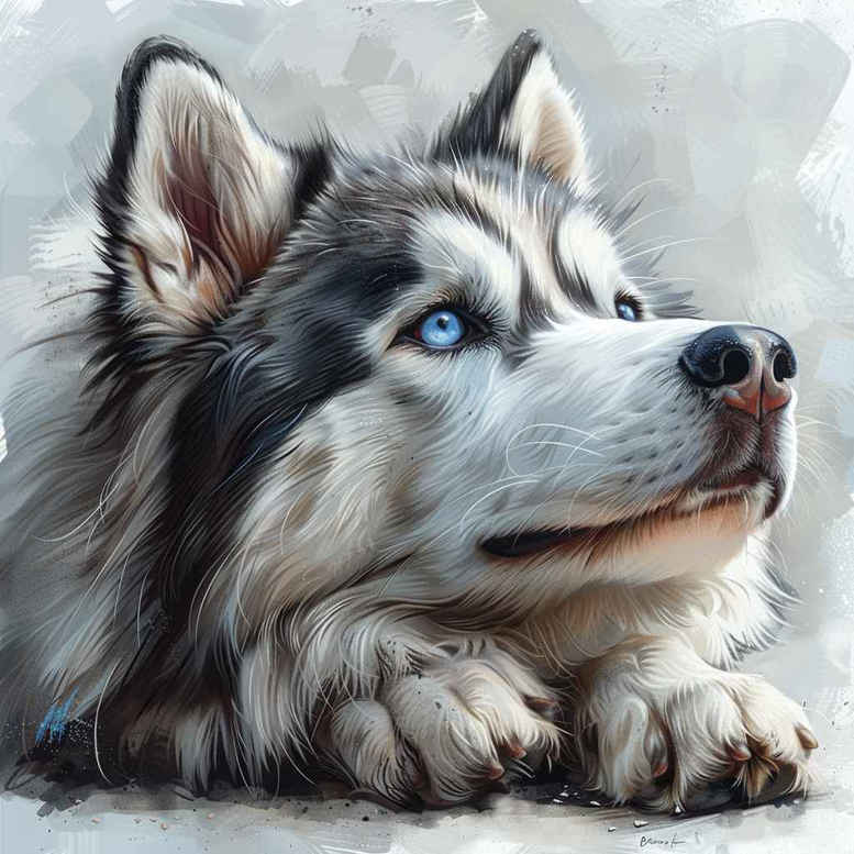 This image presents a lifelike dog portrait concept designed for a tattoo, centered on a husky-like companion resting with a gentle gaze. The palette blends natural greys and whites with selective blue in the eyes, delivering a vivid, color-rich interpretation that reads as a full-color realistic tattoo. The fur texture is conveyed through soft gradients, fine line work along the muzzle and whiskers, and careful highlight placement to reproduce the plush quality of a real coat. The composition favors a straightforward, portrait-oriented layout that works well on the upper arm, back, or chest, while remaining legible at smaller scales through clean lines and controlled shading. As a tattoo design, it emphasizes meaning and memory: a faithful companion captured in a moment of calm, a symbol of loyalty and enduring presence—ideal for meaningful tattoos and pet memorial themes. Technically, the piece leans toward photorealism rather than abstract representation, balancing realism with artistic interpretation to ensure ink density, longevity, and clarity over time. The concept is adaptable, able to incorporate additional motifs such as subtle floral elements or symbolic motifs (e.g., infinity, heart, or blossoms) while preserving the dog’s essential identity; for a broader narrative, elements from Japanese style tattoo or tribal can be integrated with restraint to maintain readability. This project demonstrates how a dog portrait can function as both stand-alone art and a customizable template within a larger sleeve or back piece, reinforcing the idea that tattoo design can honor a beloved pet with a personal, timeless image. In summary, this full-color, realistic tattoo concept pairs a meaningful subject with precise technique, offering a versatile, high-impact option for tattoo lovers seeking a memorable animal portrait, and it remains relevant to keywords such as tattoo, tattoo design, meaningful tattoos, fine line tattoo, lotus flower tattoo, infinity tattoo, tribal tattoo, rose tattoo design, small tattoos, flower tattoos, custom tattoo design, Japanese style tattoo, black and grey, realistic tattoo, body art, ink.