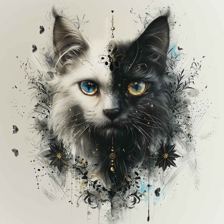 AI-generated tattoo project presented here features a split-face cat rendered in a fluid watercolor style. The left half remains luminous and pale, the fur shaded in soft whites and cool greys, while the right half dissolves into inky blacks, with an amber eye catching the viewer. The transition between halves is intentional, built from feathered edges, delicate ripples, and random pigment drops that create a living edge rather than a rigid line. The composition relies on contrast, texture, and nuance: a quiet, lifelike cat coming apart into abstract pigment, a motif that lends itself to a bold yet refined tattoo design. The pattern-like splatter element introduces a dynamic texture that can be emphasized or minimized according to the client’s preference, making it a versatile option for cover-up situations where a darker existing tattoo needs masking while a new focal point remains readable. From a tattoo design perspective, this concept merges realism with artistic abstraction, offering a meaningful tattoo idea for animal lovers, dreamers, and those seeking a distinctive piece with duality at its core. It also nods to broader styles such as Japanese-inspired ink, tribal lines, or fine-line approaches, depending on the artist’s interpretation, while remaining faithful to black and grey realism. As an AI-generated tattoo project, it demonstrates how digital art can translate into a practical body art concept—an imaginative yet applicable tattoo design with broad customization potential. In short, the split-face cat embodies independence and mystery, a personal talisman that can be worn as a statement piece or a subtle daily reminder, and its cover-up potential makes it especially appealing for clients seeking to transform an older tattoo into something fresh and meaningful. Keywords: tattoo, tattoo design, meaningful tattoos, fine line tattoo, lotus flower tattoo, infinity tattoo, tribal tattoo, rose tattoo design, small tattoos, flower tattoos, custom tattoo design, Japanese style tattoo, black and grey, realistic tattoo, body art, ink.