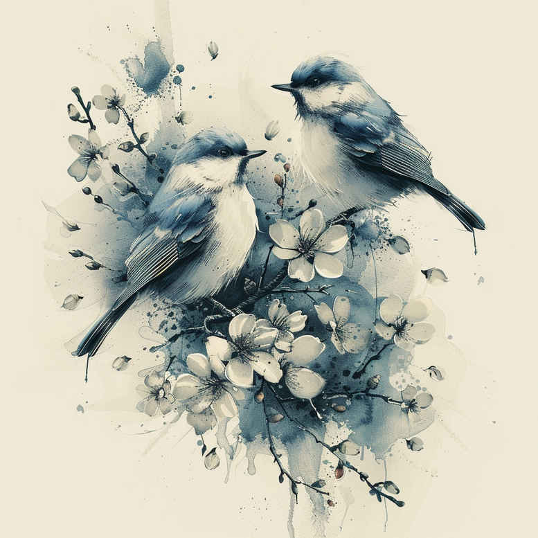 An AI-generated tattoo project concept featuring two blue-grey watercolor birds resting among a cluster of white blossoms, supported by delicate branches. The design relies on loose washes, soft gradients, and fine line detailing to capture the fluid motion of feathers and petals, creating a painterly feel that works well as a stand-alone piece or as part of a larger sleeve. The composition emphasizes balance, negative space, and a cool blue palette that suits both black and grey and full color applications, allowing the ink to breathe and the skin to glow with subtle depth. Symbolically, the birds evoke freedom and curiosity, while the blossoms signify renewal and beauty, making this a meaningful choice for meaningful tattoos or small tattoos with a quiet mood. From a tattoo design perspective, the concept blends Japanese style sensibilities with contemporary watercolor technique, producing a refined yet organic scene suitable for a forearm, shoulder, or upper back placement. Artists can build on the motif by adding additional floral elements or a lotus flower tattoo motif, or by extending the scene into a larger floral-bird narrative—each element can be executed with fine line precision to maintain legibility over time. This AI-generated tattoo project demonstrates how digital concepts can inform traditional ink: layering, shading, and color work translate into a durable, elegant body art piece that emphasizes natural detail, soft edges, and a timeless aesthetic. It’s a versatile concept for tattoo lovers seeking a tasteful, meaningful design with enduring appeal. For clients considering a small tattoo, the scene can be scaled down to a micro piece with preserved motif. With careful planning, the same motif can be executed as a fine line tattoo or as a larger black and grey piece, depending on the client’s preference. The watercolor effect is achieved through strategic layering and feathered shading to avoid heavy saturation over time, ensuring longevity on skin. This concept also lends itself to Japanese style tattoo influence, where nature symbolism and subtle transitions are valued in modern body art, ink, and composition.