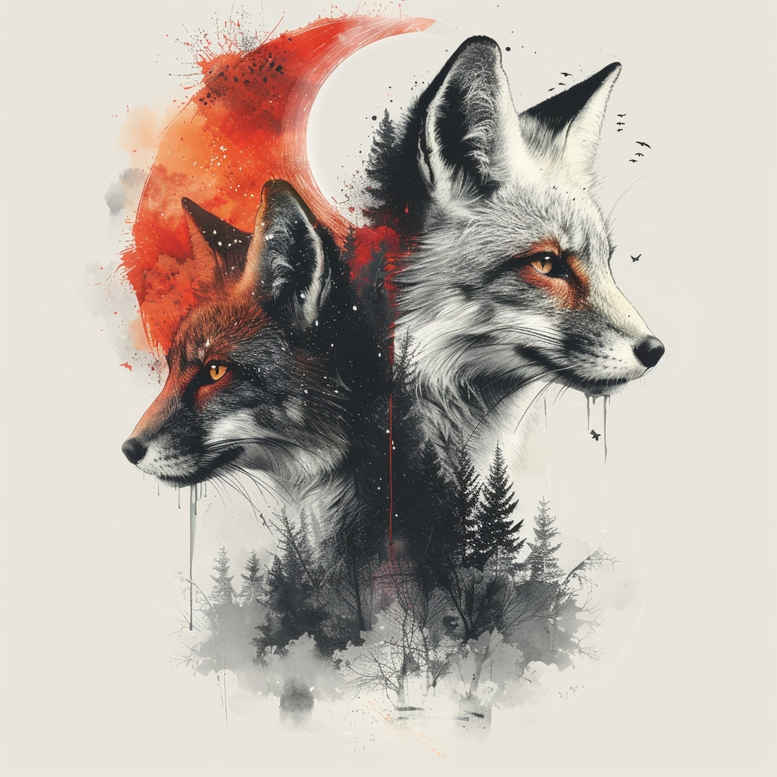This AI-generated tattoo project presents a double-wolf motif rendered in a watercolor style that blends bold silhouette with soft color washes. The left wolf erupts in warm orange-red tones while the companion on the right remains in cooler gray-black shading, creating a dynamic contrast that echoes themes of duality, loyalty, and wilderness. Executed in a loose, painterly technique, the design relies on feathered edges, controlled splashes, and subtle blurs to mimic ink suspended in water. The composition prioritizes negative space and a misty background to keep the focus on the overlapping profiles and their keen expressions. From a technical perspective, the piece would translate well as a fine-line-inspired tattoo design with black and grey shading or vibrant color density, allowing choices between a restrained monochrome look or full-color execution. As a concept, it aligns with meaningful tattoos that symbolize companionship and instinct, while offering flexibility for a custom tattoo design through line work, shading, and color density adjustments. This is an AI-generated tattoo project, meant as a concept rather than a final commission, and the artwork explores how watercolor effects can translate into permanent skin art with careful layering of ink, contrast, and skin-tone adaptation. The design borrows from wildlife motifs and can be refined into a Japanese-style tattoo or a contemporary wildlife motif, preserving the essence of two wolves as guardians and guides on a journey. In short, this tattoo design embraces wildlife imagery with modern color dynamics and bold silhouette, offering a striking option for lovers of small tattoos or larger body art and meaningful symbolism; it provides a versatile base for further exploration in custom tattoo design, including potential adaptations to flower-themed pieces or tribal-inspired line work.